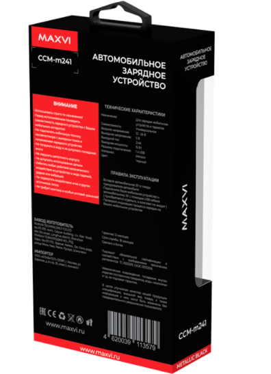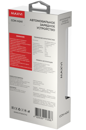 АЗУ Maxvi CCM-M241- это универсальный автомобильный адаптер с одним USB разъемом, который предназначен для заряда аккумулятора Вашего мобильного устройства от бортовой сети автомобиля с напряжением 12 или 24В.