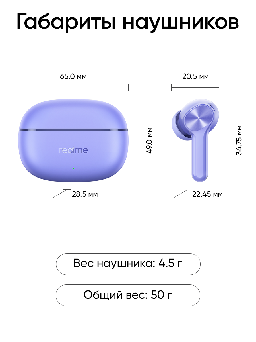 Realme Buds Т200 lite - это новая версия модели Buds T100 и T110, а также идеальный выбор для тех, кто ценит качественный звук, комфорт и свободу движения! Эти Bluetooth-наушники созданы, чтобы подарить вам незабываемые эмоции от музыки, звонков и игр. Стильный дизайн, передовые технологии и невероятная автономность — всё это в компактном корпусе по доступной цене!