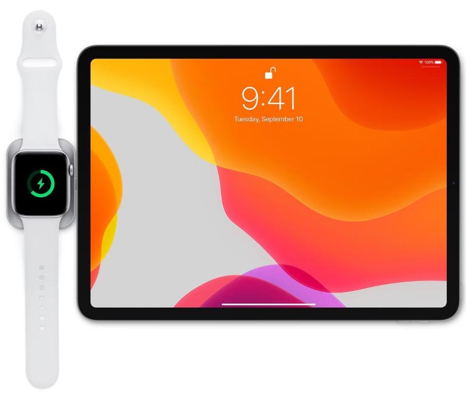 Уникальная двухсторонняя зарядка для питания Apple Watch или совместимых наушников AirPods.