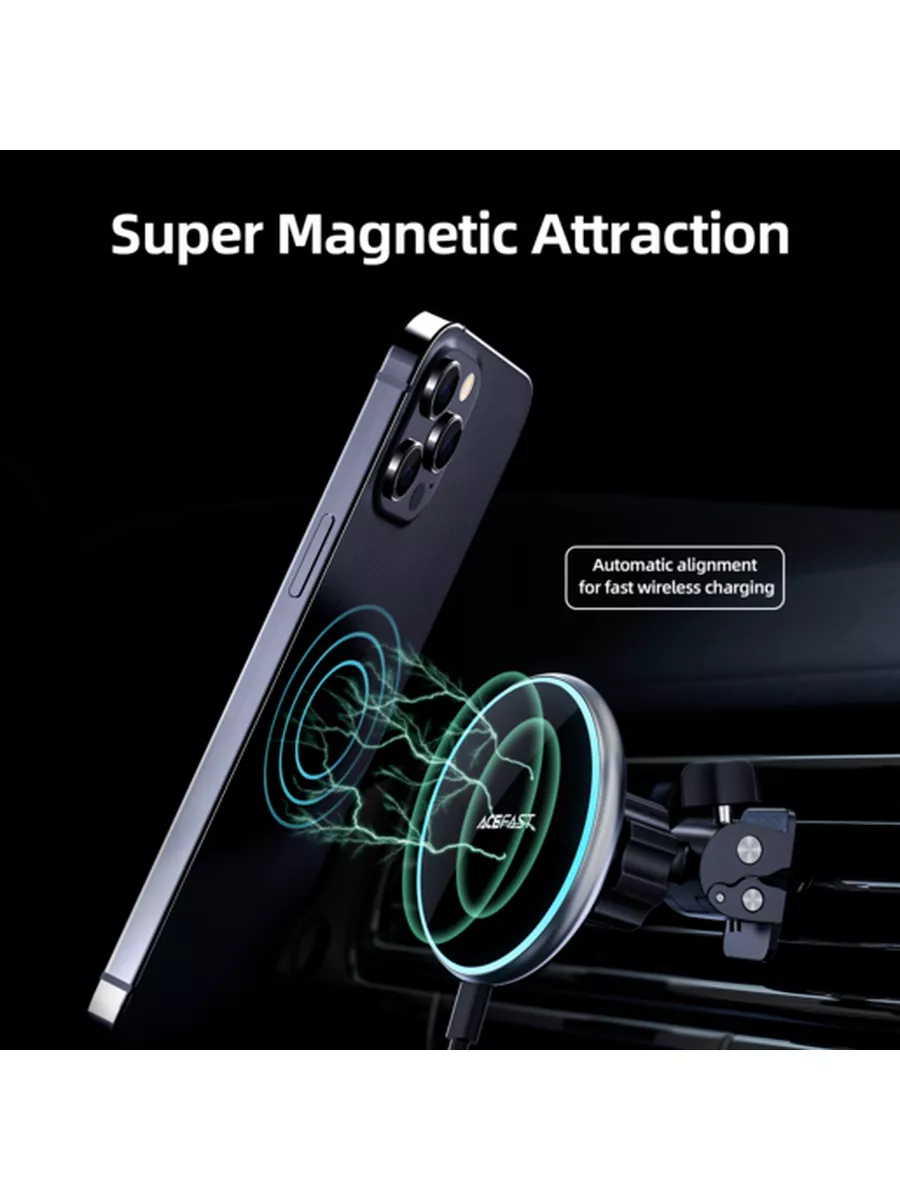 Автомобильный держатель Acefast D3 Magnetic Wireless Charging Car Holder Silver оснащен зарядным модулем, обеспечивающим быстрое восполнение ресурса батареи любых моделей смартфонов. Он отличается максимальным выходным напряжением 15 Вт.