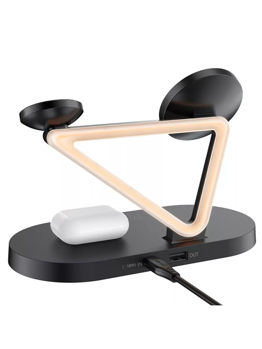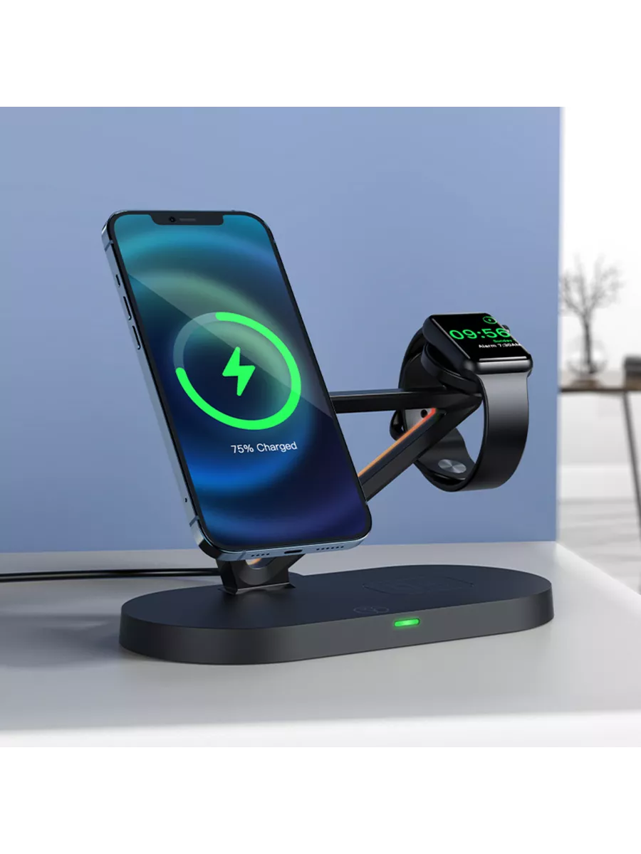 Беспроводная зарядка 3-в-1, мобильный телефон, часы и наушники заряжаются одновременно.