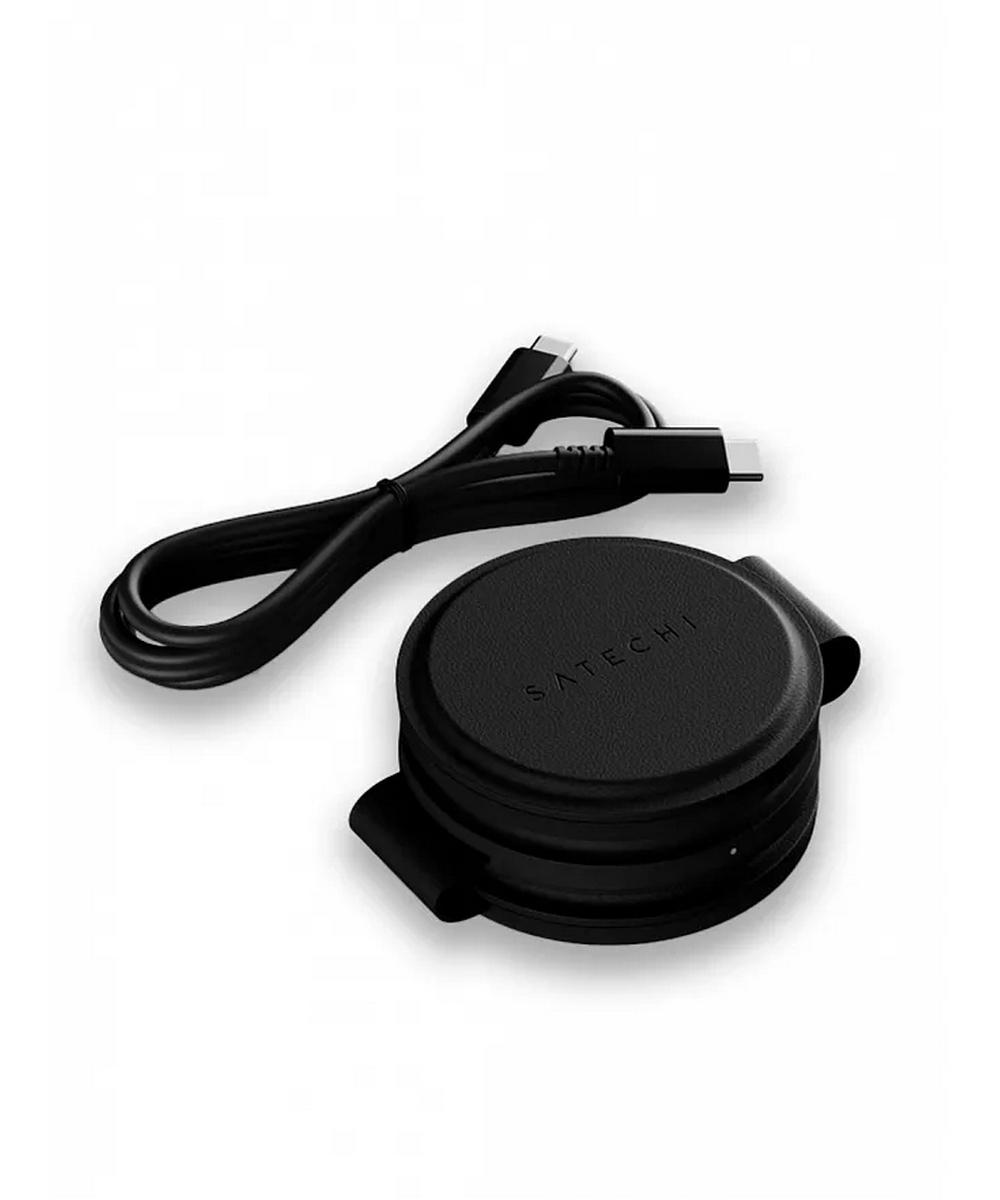 Встроенные магниты гарантируют точное выравнивание катушек, что повышает эффективность зарядки. Конструкция складывается и имеет компактную круглую форму, поэтому устройство удобно брать с собой в дорогу — оно легко помещается в карман или дорожную сумку. Корпус выполнен из качественных и более экологичных материалов, что делает аксессуар долговечным и безопасным для окружающей среды. Для подключения используется порт USB-C, в комплект входит кабель длиной 1 метр, чехол для переноски и руководство пользователя. Зарядное устройство совместимо с широким спектром техники, включая модели iPhone 12–16, Apple Watch серий 1–10 и Ultra, AirPods с MagSafe-чехлом, а также некоторые устройства Samsung, Google, OnePlus и Sony. Чтобы магнитное крепление работало корректно, чехол устройства не должен превышать 3 мм толщины и не содержать