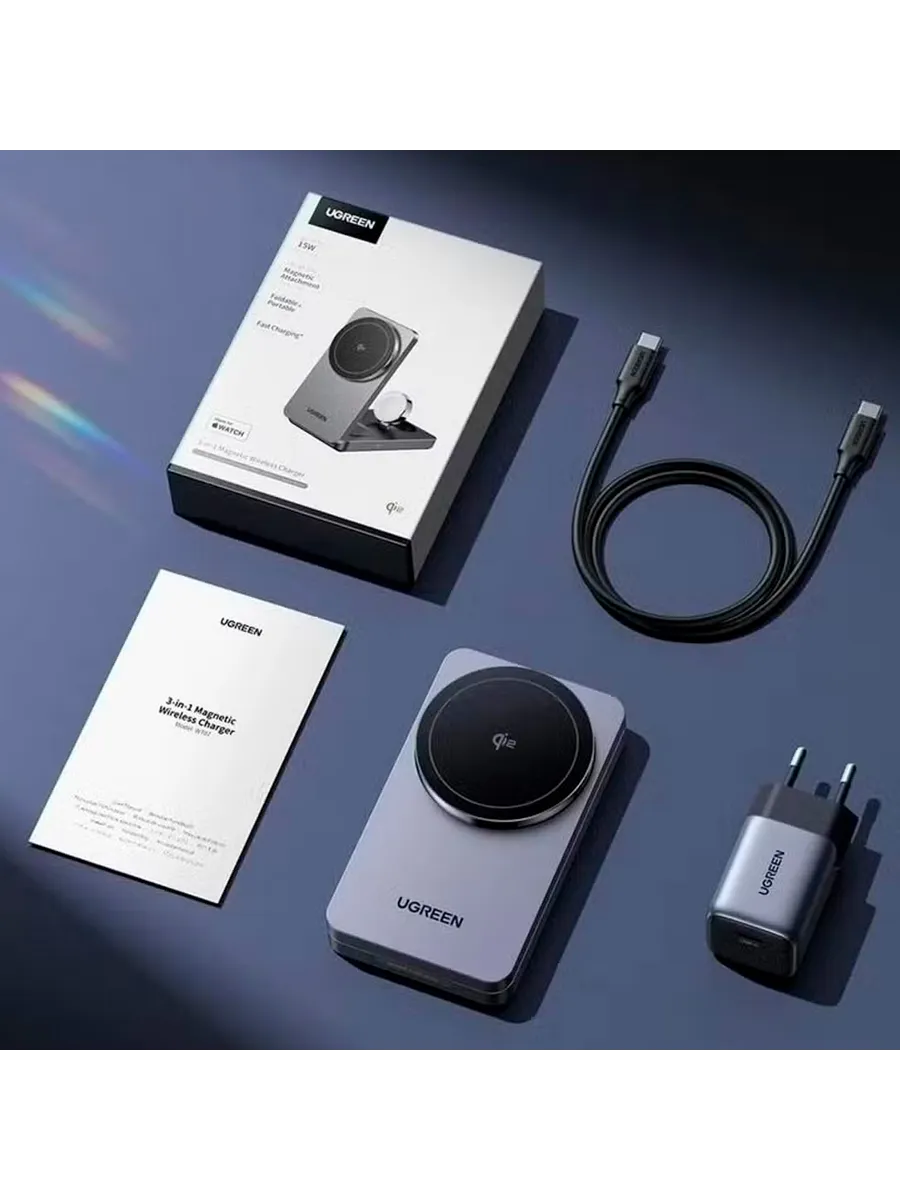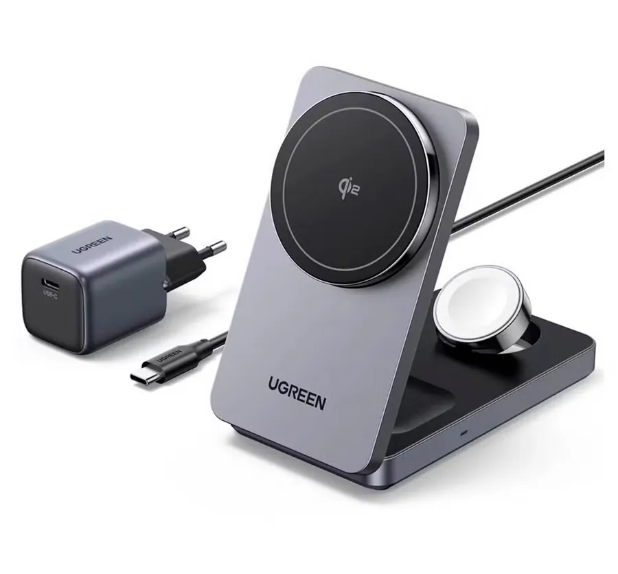 Беспроводное зарядное устройство 3 в 1 обеспечивает выходную мощность 15 Вт для iPhone, 5 Вт для AirPods и 5 Вт для iWatch. Благодаря встроенному магнитному кольцу с 18 магнитами N52 оно позволяет одновременно заряжать все устройства при их правильном расположении. Сертифицированное по стандарту Qi2 зарядное устройство MagFlow также обеспечивает защиту от перенапряжения, перегрузки по току, перегрева и коротких замыканий.