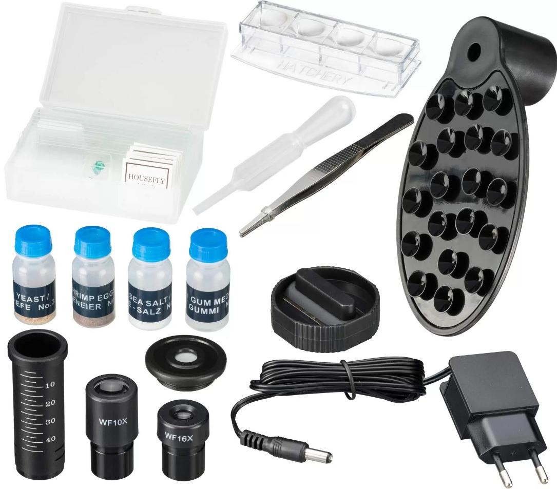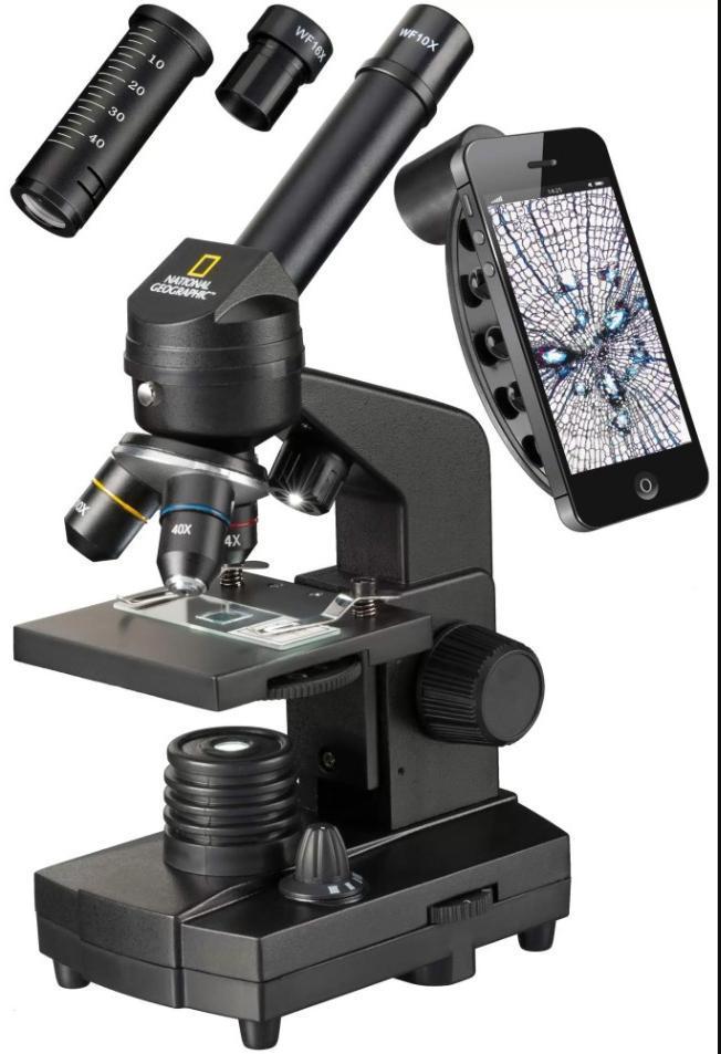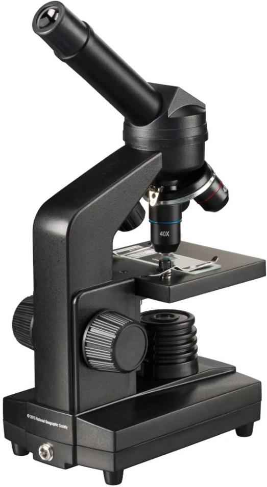 Биологический микроскоп Bresser National Geographic 40–1280x это оптический прибор для увлекательного обучения школьника или занятий микробиологией в качестве хобби. Позволяет изучать прозрачные и непрозрачные объекты, образцы малого и среднего размера, наблюдать за ростом артемии и открывать новые стороны микромира. В комплект входит три объектива, два окуляра и двукратная линза Барлоу. Максимальное увеличение микроскопа 640х, но с использованием линзы Барлоу вы сможете достичь 1280х. Фокусировка ручная, предметный столик можно перемещать по вертикали. Микроскоп снабжен двумя светодиодными подсветками. На основании размещено кольцо регулировки: первое положение – включается нижняя, второе – верхняя, третье – работают две одновременно. Для удобства освещение можно отключить и вести наблюдения при естественном свете. Регулировать световой поток также можно при помощи диска с диафрагмами и светофильтрами. У микроскопа прочный металлический корпус, подвижный предметный столик с двумя препаратодержателями. Оснащен монокулярной насадкой для наблюдения одним глазом с комфортным углом наклона тубуса под 45 градусов. Отличительной особенностью данного микроскопа является наличие адаптера для смартфона. С его помощью легко фотографировать и записывать видео на камеру вашего гаджета все наблюдения. Самый интересный эксперимент - выращивание артемии подробно описан в руководстве пользователя. Микроскоп Bresser National Geographic 40x-1280x прекрасно подойдет для начинающих исследователей биологии и будет полезным подарком.