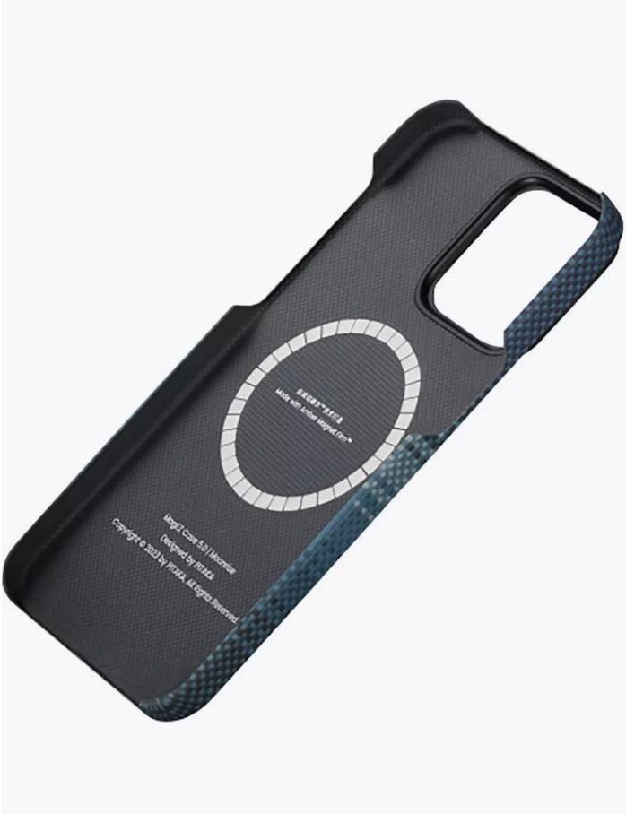 Чехол Pitaka MagEZ Case 4 Moonrise iPhone 15 Pro кевлар (KI1501MO) выполнен из арамидного волокна (кевлара) и обеспечит вашему телефону надёжную защиту без добавления объёма, благодаря тонкому корпусу (толщиной 0.75 мм) и небольшому весу. Особенности. Высокотехнологичный материал. Корпус изготовлен из кевлара (арамидного волокна), используемого в пуленепробиваемой броне и аэрокосмической промышленности. Покрытие чехла. Чехол не скользит в руке, приятен на ощупь, углы сглажены для удобного захвата чехла. Улучшенная алюминиевая рамка предназначена для защиты камеры. Поддержка MagSafe. Чехол изготовлен по технологии Amber Magnet Film - это инновационная технология нанесения магнитов без клея, разработанная компанией Pitaka в 2023 году, которая объединяет кольцо MagSafe и защитный чехол. Тип: накладка. Устройство: Apple. Модель устройства: iPhone 15 Pro. Диагональ экрана: 6.1". Корпус. Материал: арамидное волокно. Цвет: синий. Отверстие: для камеры, для подзарядки, для кнопок управления. Приподнятые бортики для защиты экрана и камеры. Функции. Поддержка Apple MagSafe. Размеры и вес. Вес: 13 г.