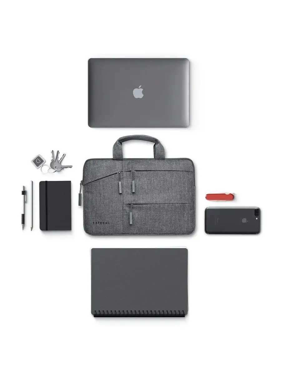 Сумка Satechi Water-Resistant Laptop Carrying Case, выполненная из нейлона серого цвета, способна выдерживать различные неблагоприятные воздействия внешней среды и легко очищается от загрязнений. Конструкция с плотными стенками является гарантией надежной защиты содержимого от ударов, повреждений, загрязнений. Основное отделение предназначено для размещения 15-дюймового портативного компьютера, а специально для периферийных устройств и мелких принадлежностей предусмотрено несколько внешних карманов на застежке-молнии. Мягкие ручки с накладками позволяют комфортно удерживать сумку Satechi Water-Resistant Laptop Carrying Case. Оптимально подходит для деловых командировок и туристических поездок.