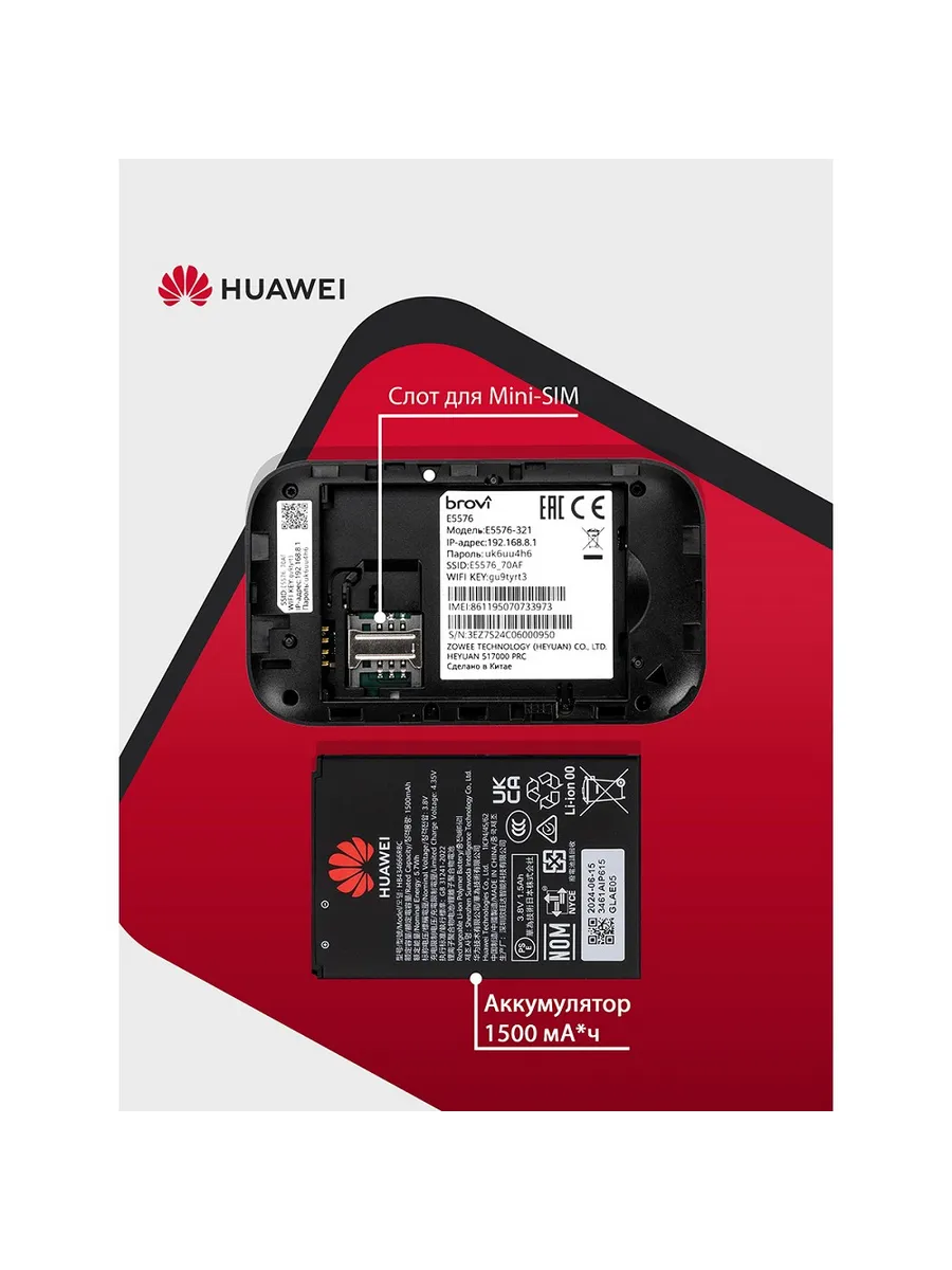 Мобильный роутер wifi с сим картой HUAWEI E5576-321 способен одновременно подключать до 10 устройств, что делает его отличным выбором для поездок с друзьями или семейными выездами. Неважно, нужны ли вам интернет для работы, развлечений или общения – этот роутер справится с задачей. Одна из ключевых особенностей – мощная батарея на 1500 мАч, обеспечивающая долгую работу без подзарядки. Вы можете быть уверены, что ваше устройство будет работать даже вдали от электрических розеток. Компактный размер и легкий вес позволяют легко носить его с собой в кармане или сумке. Не позволяйте ограничениям в интернет-соединении мешать вам. Обеспечьте себе надежный доступ в интернет в путешествиях, на даче или в любом другом месте с помощью LTE роутера HUAWEI 4G Mobile WiFi 3s E5576-321.