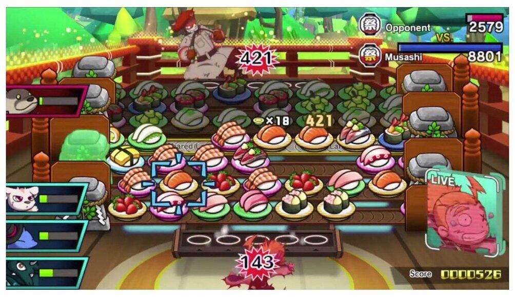 Nintendo Sushi Striker: The Way of Sushido – весёлая игрушка для портативной консоли. Суть геймплея проста – победить противника в суши-битве. Смесь головоломки и аркады не даст тебе соскучиться: здесь можно собирать определённые комбинации из тарелок одного цвета и швырять их в повара напротив. А если учитывать ещё и их содержимое (виды суши), то получится удивить оппонента действительно сокрушительным комбо-ударом!