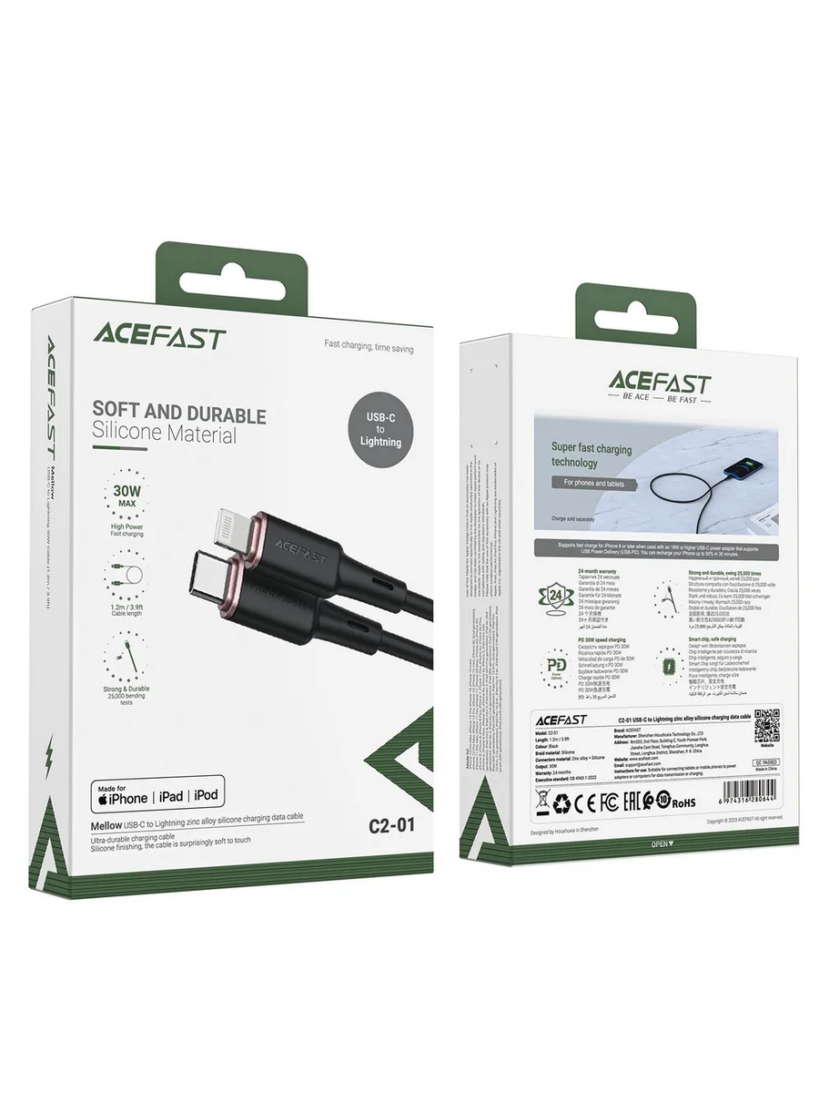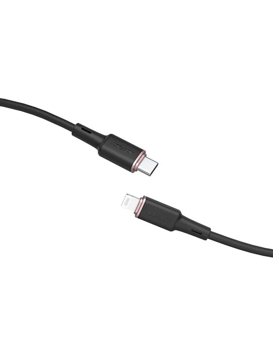 Кабель ACEFAST C2-01 USB-C to Lightning zinc alloy silicone charging data cable - оснащенный силиконовой оплеткой, предназначен для зарядки и передачи данных.