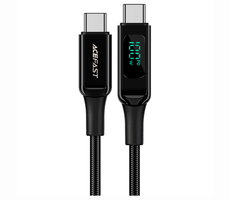Кабель AceFast— это высокоскоростное решение для зарядки устройств с разъёмами USB Type-C. Обладая реверсивными разъемами USB-C на каждой стороне, кабель полностью поддерживает мощную подачу питания и передачу данных между смартфонами, планшетами и ноутбуками. Он позволяет передавать и синхронизировать различные данные со скоростью около 480 Мбит/с. Кабель обладает оптимальной длиной в 2 метра, что исключает спутывание, а качественная оплетка кабеля предотвращает разрыв. На разъеме расположен цифровой дисплей показывающий мощность зарядки.