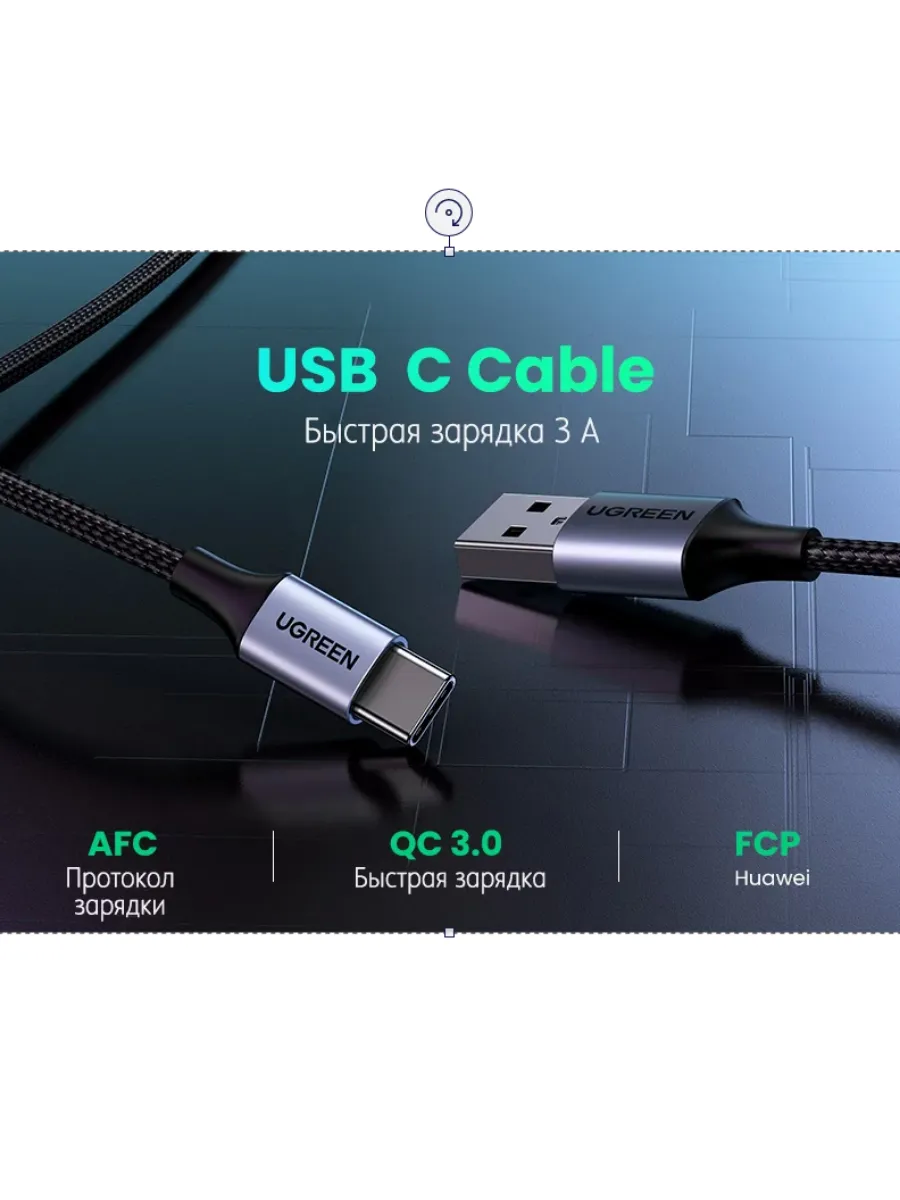 Кабель UGREEN US288 (60128) 2m USB-A 2.0 to USB-C Cable Nickel Plating Aluminum Braid