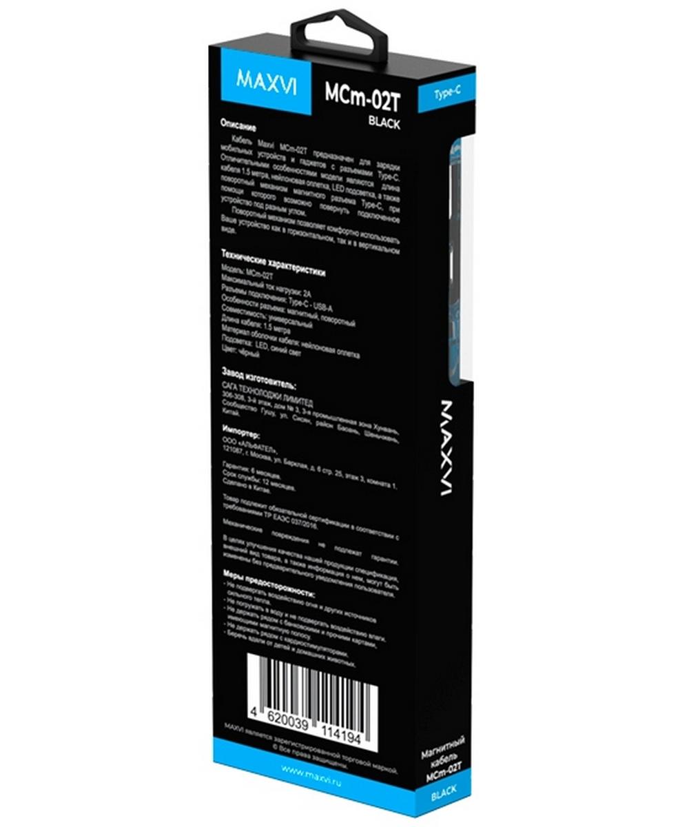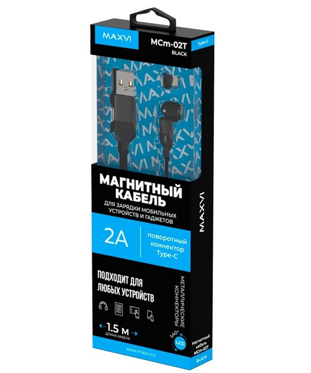 Кабель Maxvi MCm-02T предназначен для зарядки любых мобильных устройств и гаджетов с разъемами Type-C. Отличительной особенностью этой модели является съемный магнитный коннектор, который позволяет подключаться к мобильному устройству одним касанием, длиной кабеля, которая составляет 1,5 метра, а также поворотным механизмом, при помощи которого можно отрегулировать угол наклона положения вашего устройства.