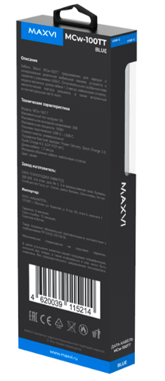 Дата-кабель Maxvi MCw-100TT предназначен для синхронизации с ПК, а также для заряда аккумулятора различных мобильных устройств с разъемами Type-C, например такими как смартфоны, планшеты, ноутбуки и т.д..