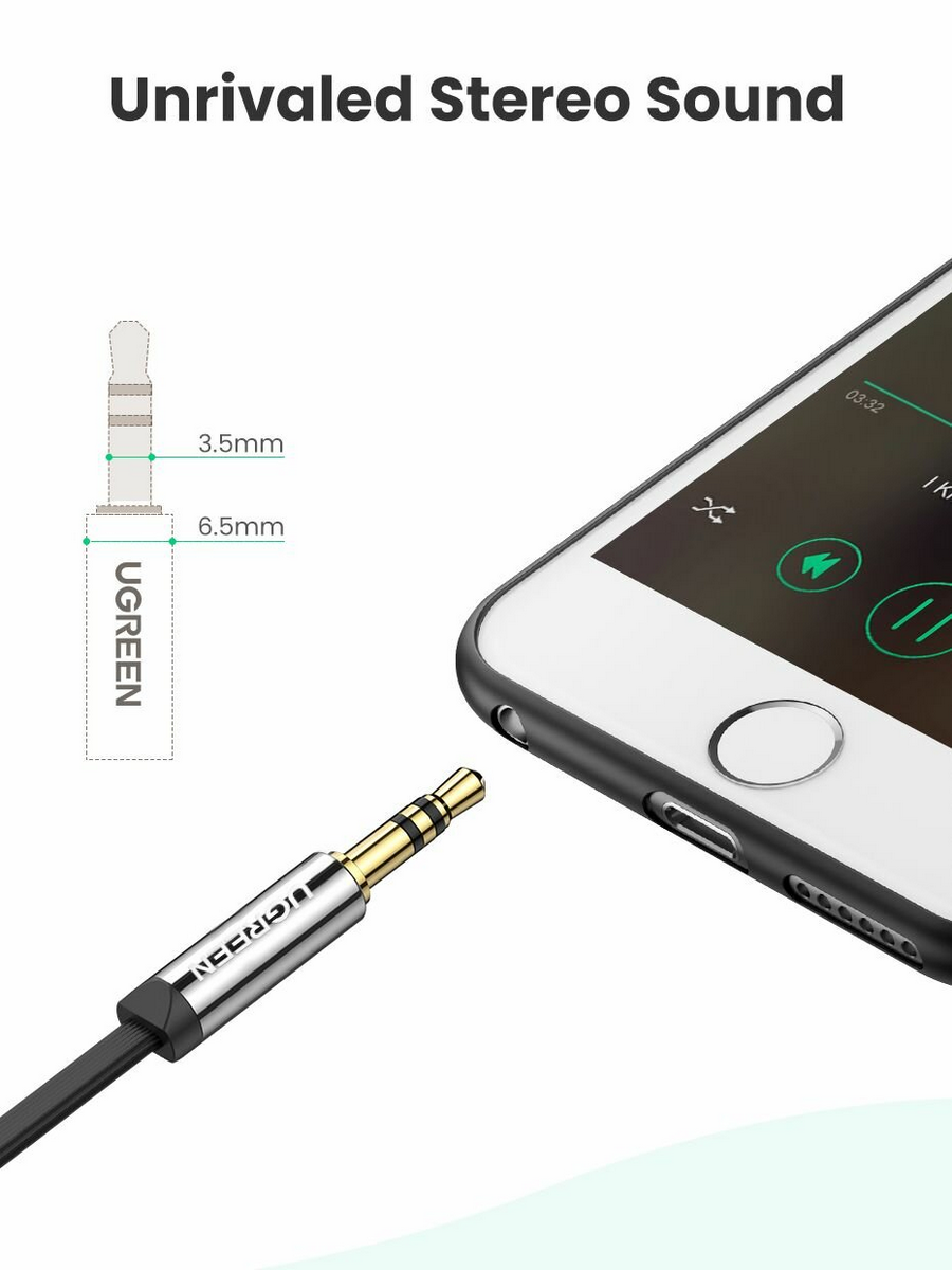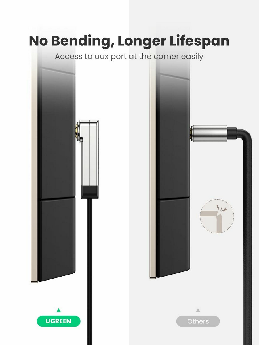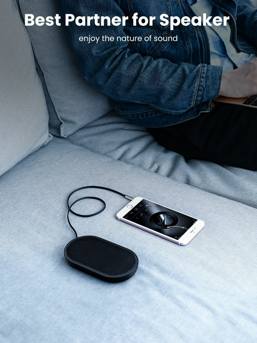 UGREEN AV119 (10598) - c этим кабелем вы запросто сможете подключать свой смартфон, iPod, iPad к вашей домашней аудиосистеме, автомобильной аудиосистеме, портативному динамику, наушникам или любому другому аудио девайсу с разъемом 3,5 мм. При этом кабель имеет инновационный угловой дизайн, что позволяет подключать его к самым разным, в том числе труднодоступным, разъемам, без риска сломать коннектор или же разорвать оплетку. Кабель Ugreen AV119 позволит вам с комфортом наслаждаться звуком высокого качества в любом месте, будь то автомобиль, дом или даже пикник на природе.