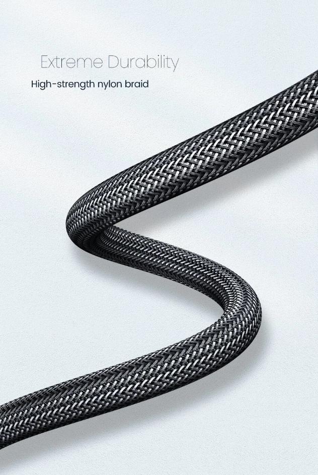 Кабель имеет толстую и прочную нейлоновую оплетку. Красиво смотрится, но это не главное. Попробуйте порвать руками трос. Придется очень постараться ;) Плетеную оболочку провода невозможно разорвать. Шнур внутри также надежно защищен. Скручивайте его, растягивайте, завязывайте в узлы – с кабелем ничего не случится. Он прослужит долго.
