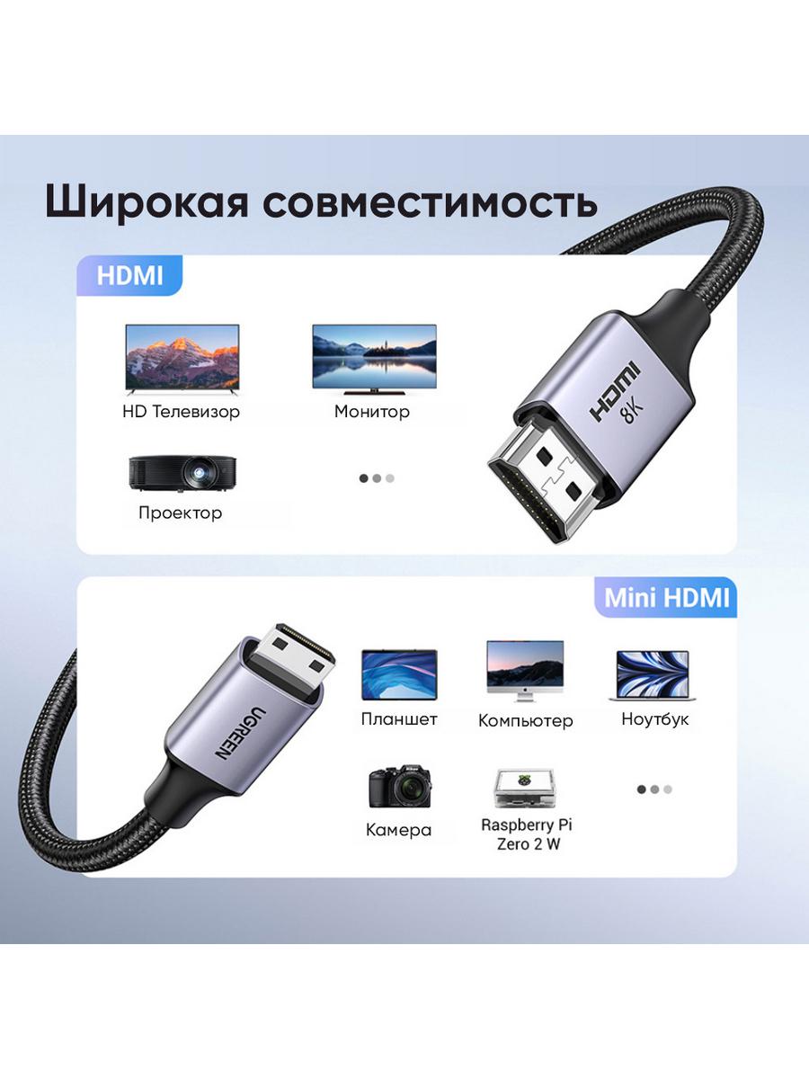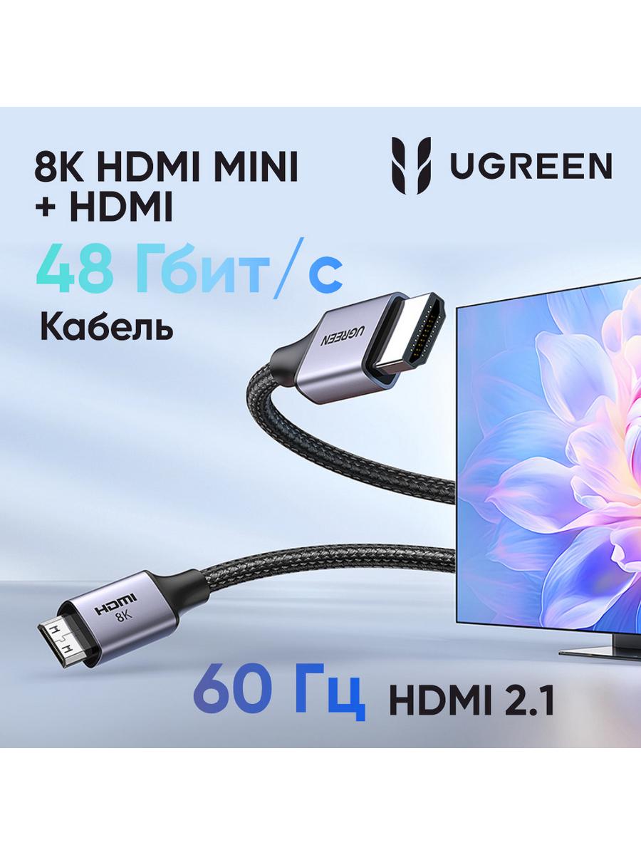 Кабель UGREEN HD163 Mini HDMI to HDMI 8K Cable - это высококачественный и надежный аксессуар для передачи видеосигнала между устройствами с разъемами HDMI.