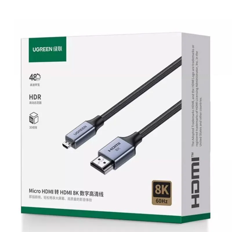Кабель UGREEN HD164 (15516) предназначен для подключения устройств с Micro HDMI (например, смартфонов, планшетов, камер) к телевизорам, мониторам или проекторам с HDMI-разъемом. Обеспечивает превосходное качество изображения с разрешением до 8K, что делает его идеальным для просмотра высококачественного контента и игр.