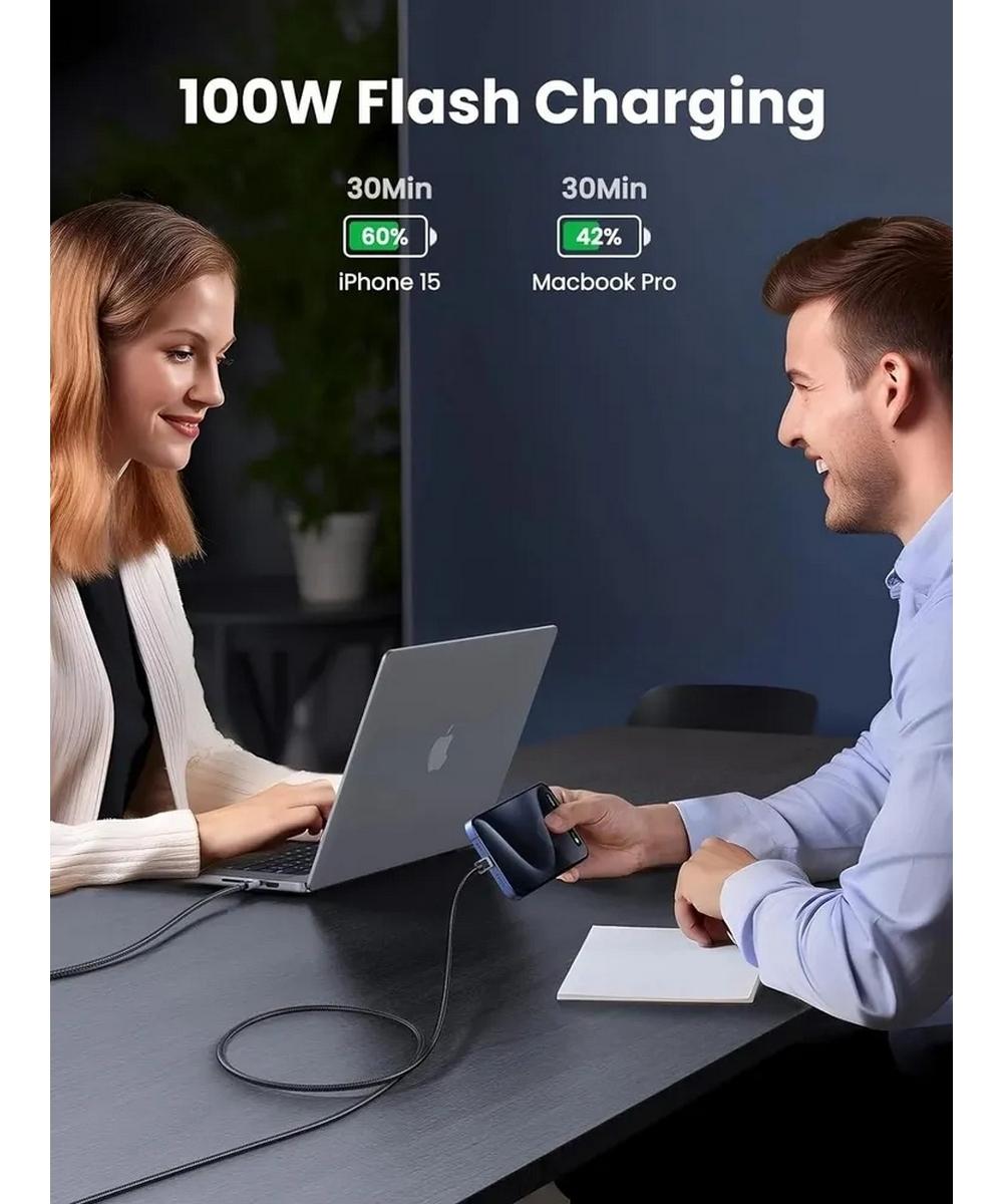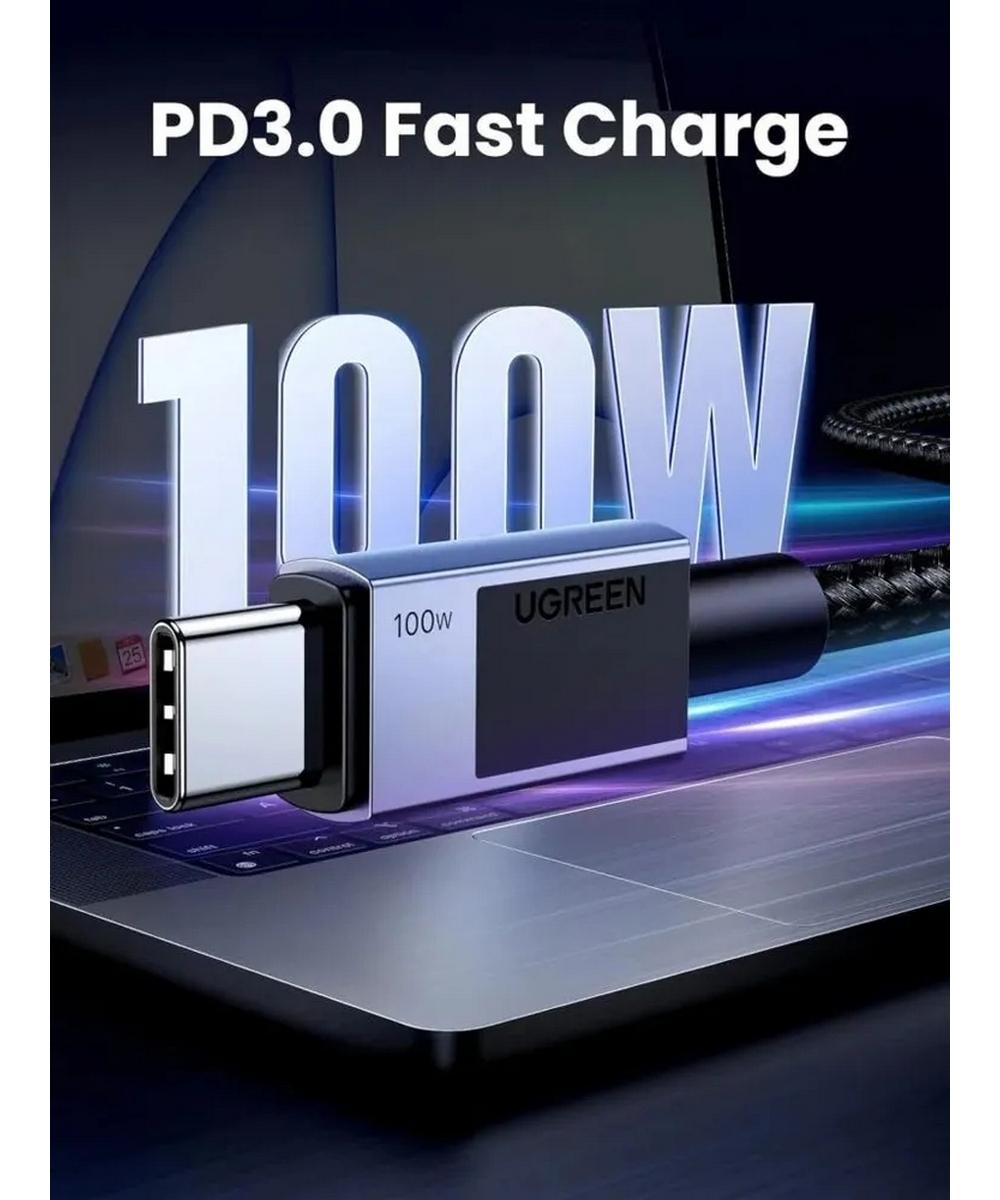 Быстрая зарядка ноутбуков или смартфонов USB-C при максимальном токе 5 А и максимальной мощностью 100 Вт. Кабель UGREEN USB-C гарантирует надежную проводимость и зарядку, защищая ваши устройства от повреждений из-за чрезмерного тока.