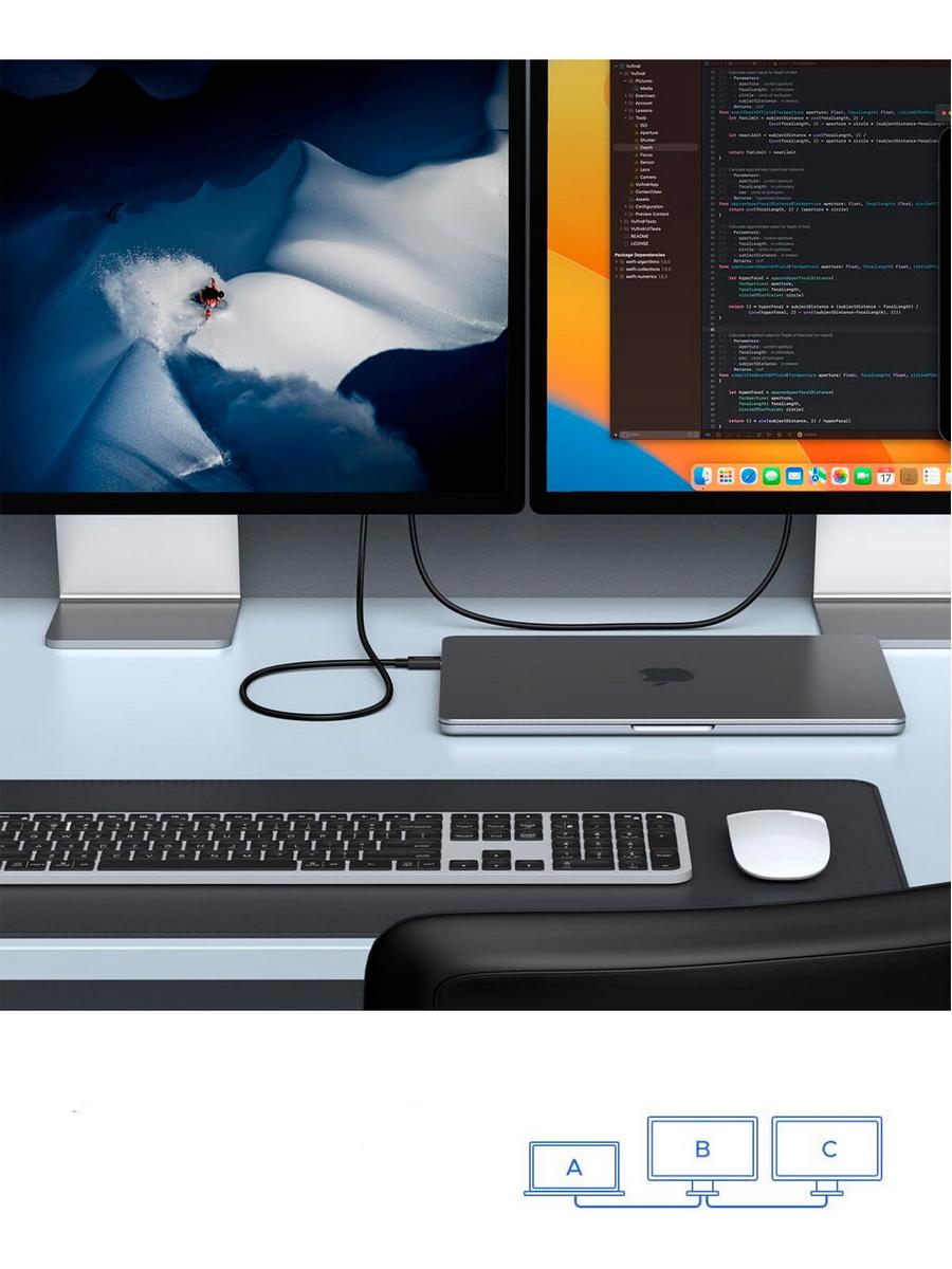 Наслаждайтесь разрешением до 16K/60 Гц при подключении этого кабеля Thunderbolt 5 к внешнему монитору с поддержкой Thunderbolt.