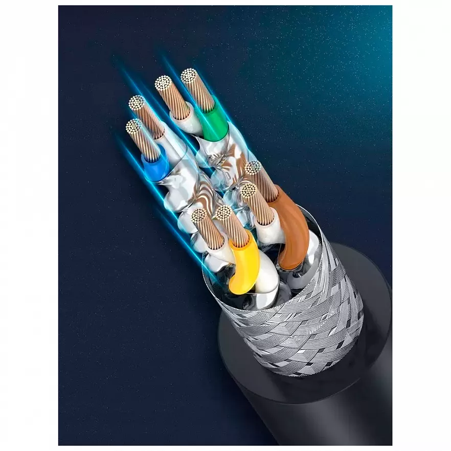 Этот Ethernet-кабель обеспечивает быструю и стабильную связь с интернетом благодаря качественным материалам и надежной конструкции. Позолоченные контакты коннекторов повышают долговечность и надежность кабеля, гарантируя бесперебойную передачу данных между вашим устройством и сетью.