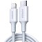 Кабель Ugreen US171 (USB-C/Lightning Cable M/M Nickel Plating ABS Shell, 2 м, белый) - отличное решение для iPhone, iPad и iPod. Подходит для зарядки и обмена данными, что позволяет восполнить энергозатраты девайса и освободить его внутреннюю память, переместив часть фото и видео на ПК. Изделие поддерживает силу тока в 3 А. Скорость передачи данных достигает 480 Мбит/с, что дает возможность за считанные минуты переместить крупные файлы на компьютер или ноутбук. Разъем 1 представлен Lightning, разъем 2 - USB Type C.