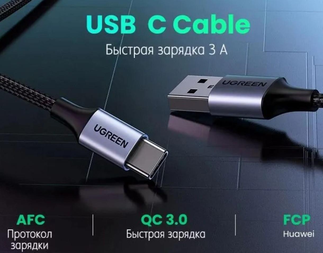 Кабель Ugreen US288 USB-A 2.0 to USB-C Cable — это невероятно прочный кабель для зарядки и синхронизации устройств. Данный кабель оснащен передовыми интерфейсами — USB и Type-C, что позволит вам подключать ваши устройства с совместимым интерфейсом к вашему ноутбуку или к зарядным устройствам с разъёмом USB и быстро пополнять заряд гаджетов! Данный кабель гарантирует прочность и долговечность. Его нейлоновая оплетка способна выдержать любое скручивание, растягивание и излом.