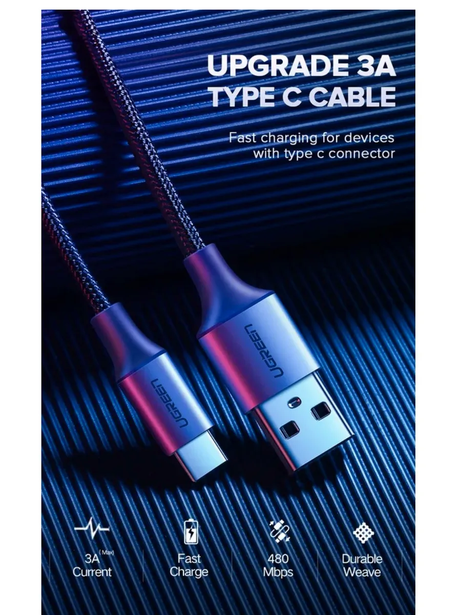Для передачи данных этот кабель для быстрой зарядки USB-C — USB A 2.0 поддерживает скорость синхронизации до 480 Мбит/с.