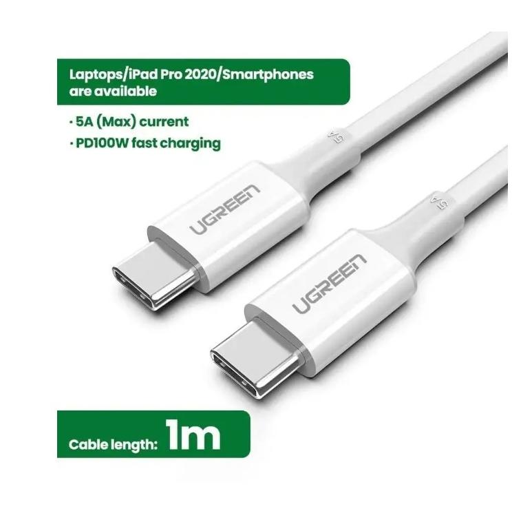 Кабель UGREEN US300 USB2.0 Type-C Male to Male Cable 5А поддерживает быструю зарядку PD до 100 Вт 20 В / 5A (макс.), 15 В / 3A, 12 В / 3A, 9 В / 3A, 5 В / 3A с адаптерами питания USB-C, такими как PD 18 Вт / 30 Вт / 45 Вт / 60 Вт / 61 Вт / 87 Вт / 96 Вт. Он также поддерживает Huawei FCP, Qualcomm QC 3.0 и протокол быстрой зарядки Xiaomi. Полная зарядка занимает всего 112 минут, так же быстро, как и при использовании оригинального кабеля зарядного устройства. Кроме того, он также поддерживает скорость передачи данных до 480 Мбит / с, файлы 1G будут переданы за 25 секунд. Универсальная совместимость. Этот кабель быстрой зарядки USB C PD совместим со всеми устройствами Type-C, Прочный и прочный: благодаря усиленному соединителю на обоих концах он выдержал более 10 000 испытаний на изгиб для достижения высокой прочности на изгиб и хорошей ударной вязкости. Безопасный и надежный. Этот кабель быстрой зарядки USB Type C также имеет встроенную защиту от перегрузки по току / перегрева / короткого замыкания и многослойное экранирование с подтягивающим резистором 56 Ом внутри, что обеспечивает безопасное и стабильное питание. Лучший вариант для экономичной быстрой зарядки и синхронизации данных с помощью кабеля USB C на USB C для ежедневного использования. USB 2.0 скорость до 480 Мбит/с. 5A fast chargе. PD3.0/QC4.0/FCP(100W max). Множественное внутреннее экранирование. Не передает аудио и видео. TPE - оплетка из экологически чистого материала.