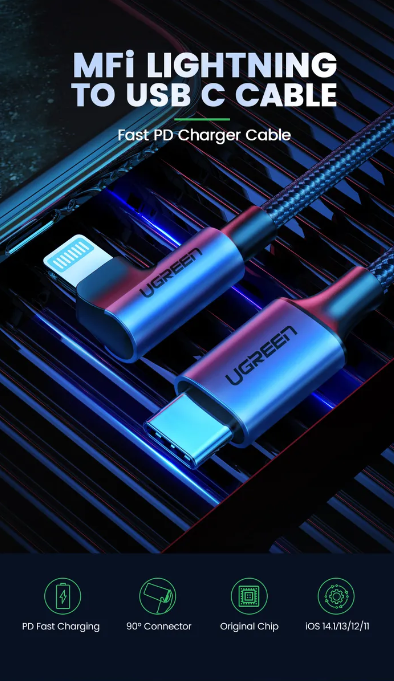 UGREEN US305 USB-C to Lightning Angled Cable Aluminum Shell Braided 1м