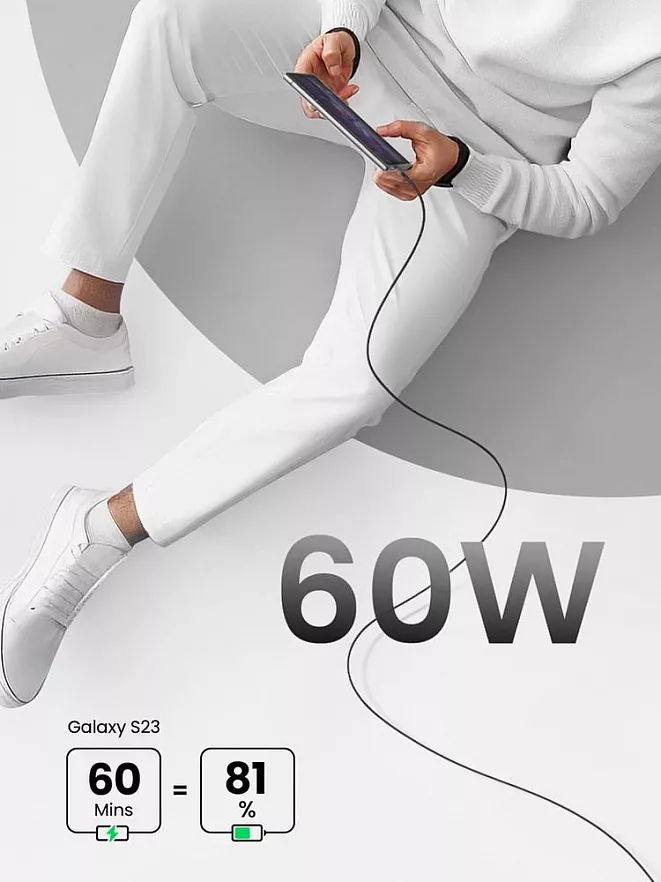 Кабель от Ugreen специально разработан для быстрой зарядки и предоставляет мощность до 60 Вт и 5 А. Он также обеспечивает мгновенный передачу данных со скоростью до 480 Мбит/с. С помощью этого кабеля вы сможете полностью зарядить ваш MacBook Air 13" всего за 1.5 часа. Кабель приятен на ощупь, легок в уходе и совместим с множеством устройств. Его прочный дизайн гарантирует стабильное, быстрое и безопасное питание. Кабель оснащен электронным чипом, который обеспечивает двустороннюю связь между устройством и кабелем, что позволяет более эффективно управлять энергопотреблением и обеспечивает быструю зарядку.