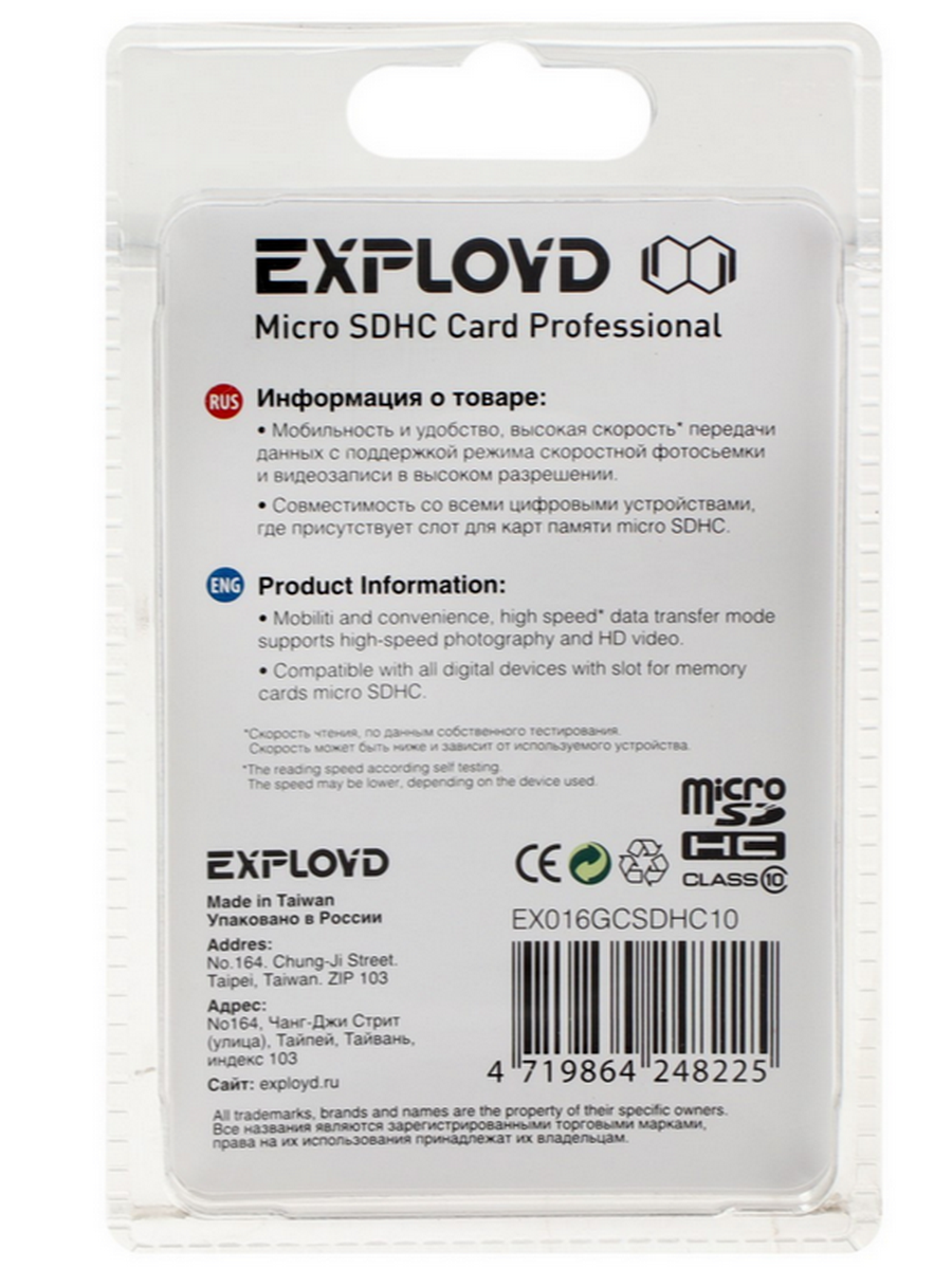Карта памяти Exployd EX016GC 16GB microSDHC с адаптером — это компактный и доступный носитель для хранения и передачи данных в мобильных устройствах. Подходит для смартфонов, планшетов, видеорегистраторов, камер и другой техники с поддержкой microSD.