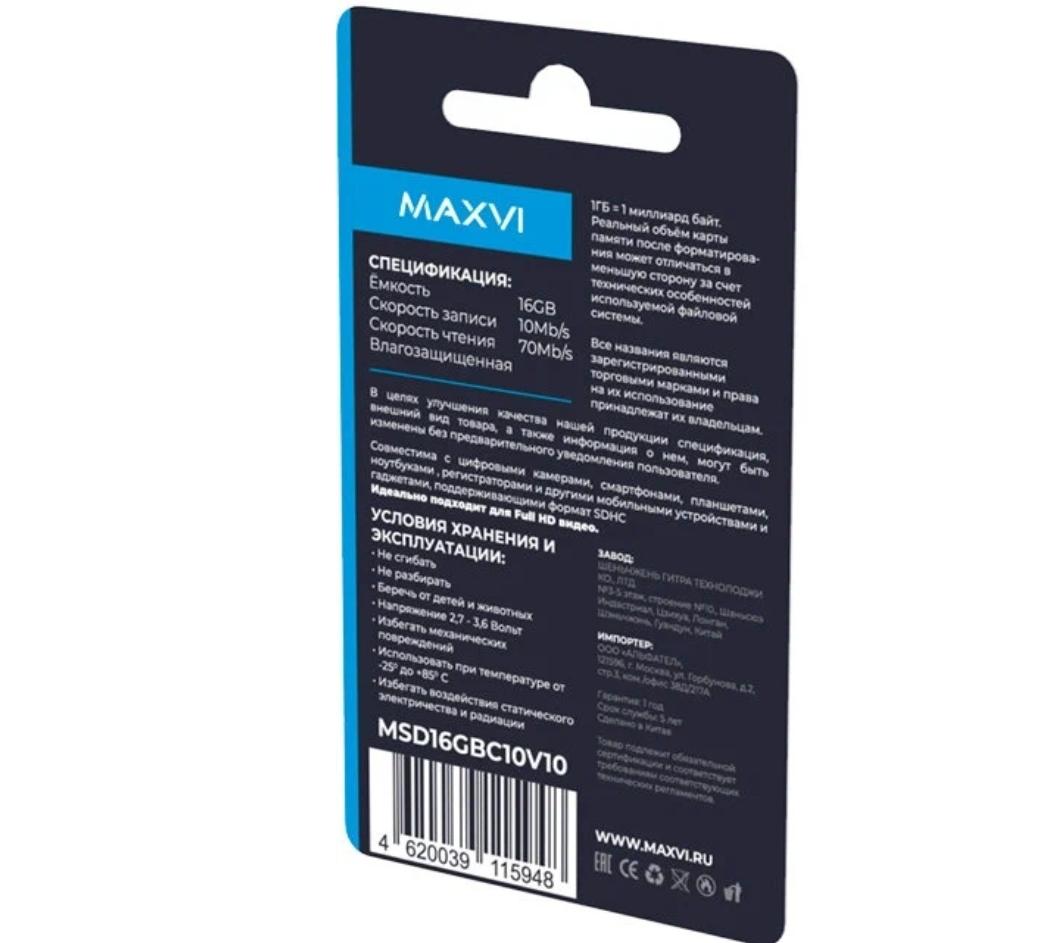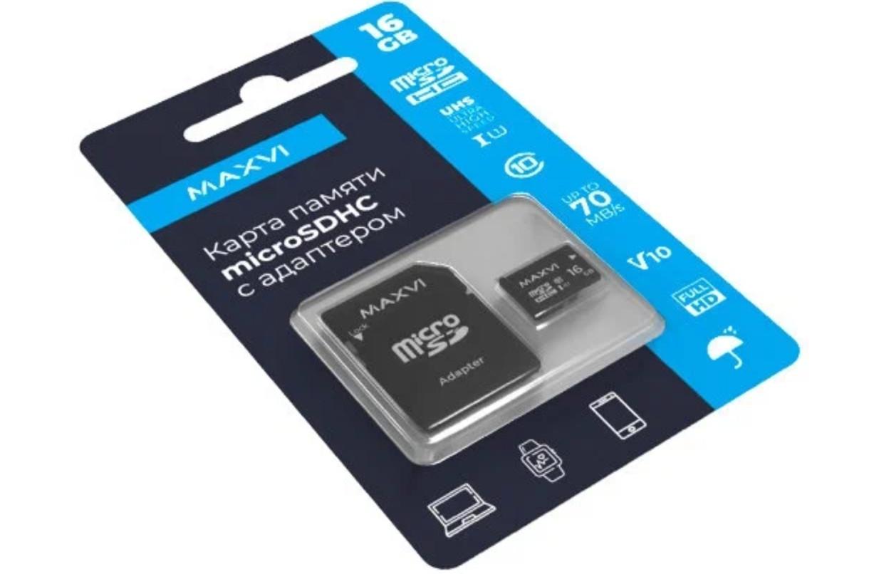 Карта памяти Maxvi microSDHC – это компактный накопитель с емкостью 16GB, предназначенный для хранения цифровой информации при использовании в смартфонах, планшетах, видеорегистраторах, плеерах, фотоаппаратах, ноутбуках и другой различной техники. Скоростные характеристики карты памяти соответствуют стандарту UHS-I (U1), которые подходят для работы с видеофайлами формата FULL HD. В комплекте с картой памяти поставляется адаптер microSD.