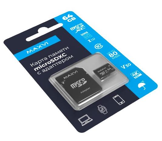 Карта памяти Maxvi microSDXC – это компактный накопитель с емкостью 64GB, предназначенный для хранения цифровой информации при использовании в смартфонах, планшетах, видеорегистраторах, плеерах, фотоаппаратах, ноутбуках и другой различной техники. Скоростные характеристики карты памяти соответствуют стандарту UHS-I (U3), которые подходят для работы с видеофайлами форматов 4K ULTRA HD и FULL HD. В комплекте с картой памяти поставляется адаптер microSD.