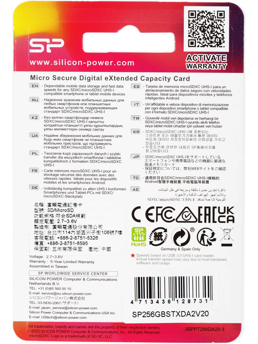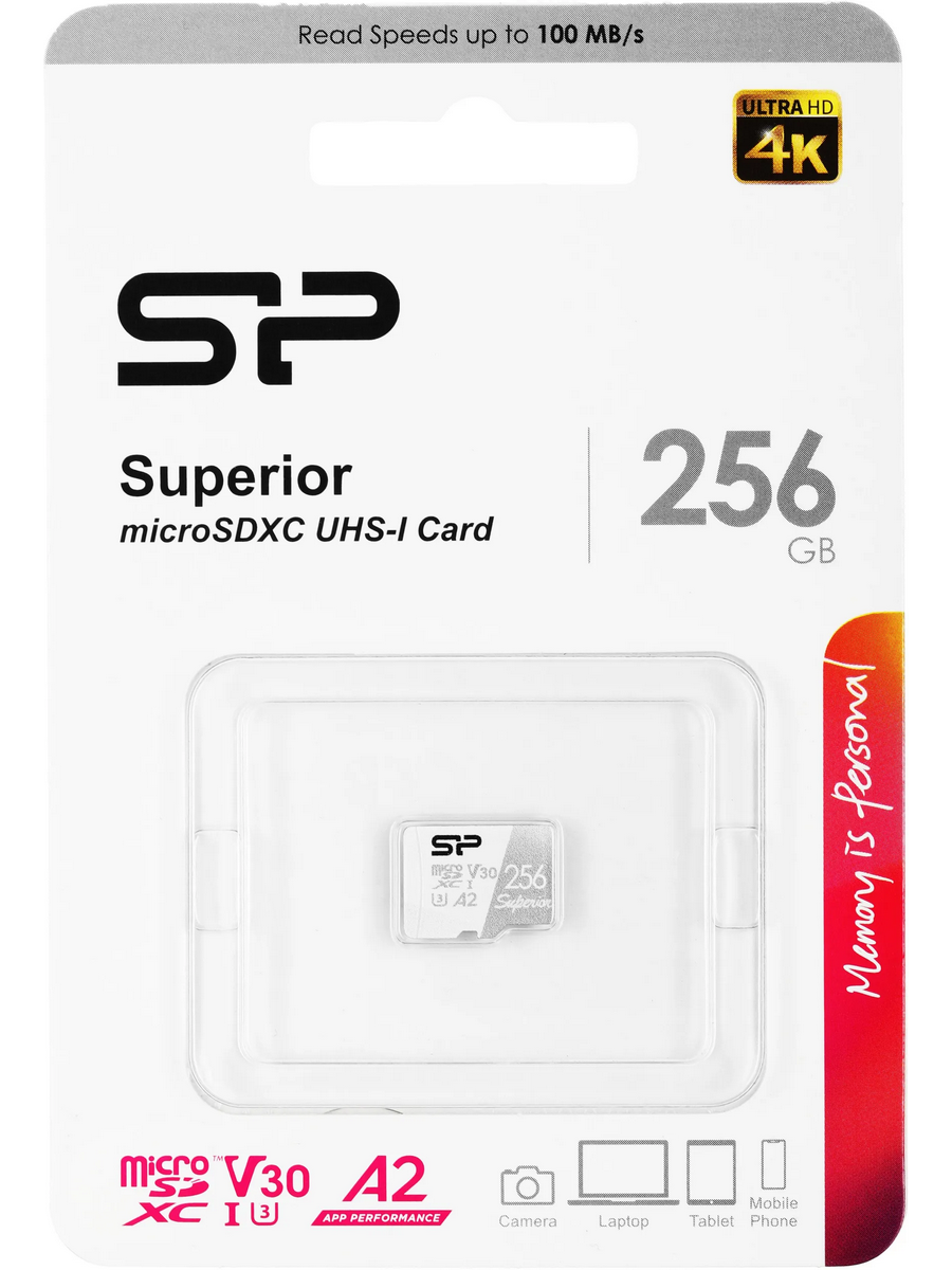 Карта памяти Silicon Power Superior Pro отличается повышенной надежностью. Усиленный разъем рассчитан на 10 000 циклов подключения/отключения. Чипы памяти 3D NAND обеспечивают лучшую устойчивость к повреждениям и длительный срок службы. Корпус карты защищен от воздействия воды, ударов, рентгеновских лучей и магнитных полей.