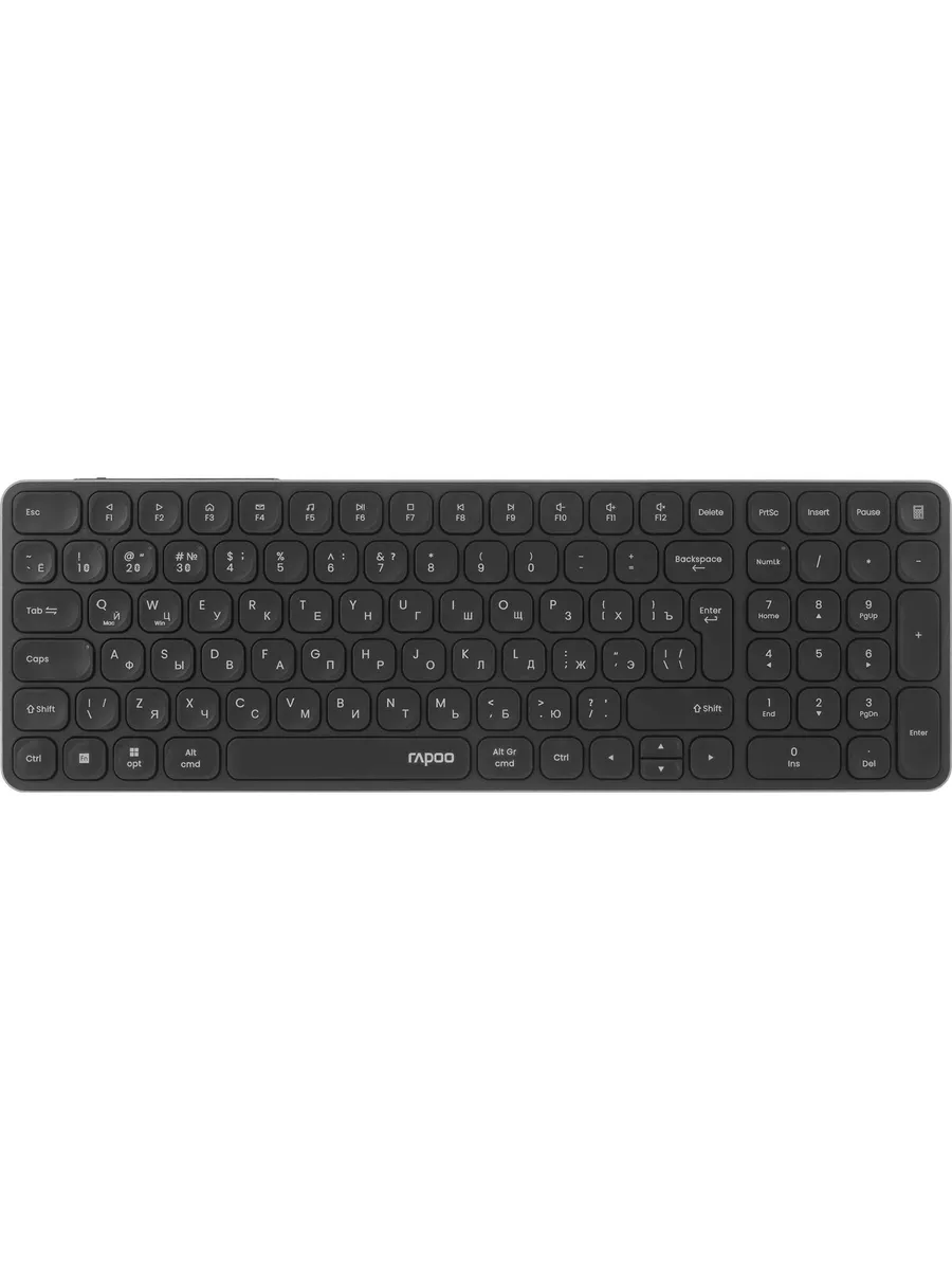 Представляем вашему вниманию элегантный и высокотехнологичный дуэт, созданный для тех, кто ценит безупречный стиль, порядок на рабочем столе и абсолютную свободу действий. Комплект клавиатуры и мыши Rapoo 9350S Black — это идеальное воплощение современного подхода к работе и творчеству, где каждая деталь продумана для вашего максимального комфорта и продуктивности. Этот набор станет не просто инструментом, а вашим надежным партнером в решении ежедневных задач, даря непревзойденное ощущение легкости и технологического превосходства. Отличительной чертой этого комплекта является универсальность беспроводного соединения. Вы получаете две передовые технологии на выбор: стабильный Bluetooth-канал для прямого подключения к вашим устройствам без лишних аксессуаров и высокоскоростной радиоканал через компактный USB-приемник. Благодаря этому вы сможете с легкостью переключаться между несколькими гаджетами — будь то стационарный ПК, ноутбук, планшет или даже смартфон. Больше никаких путающихся проводов; только чистая эстетика и полный контроль над вашим цифровым пространством без задержек и разрывов соединения. Клавиатура исполнена в ультратонком дизайне, который не только выглядит невероятно стильно и современно, но и обеспечивает исключительный эргономичный комфорт. Ее низкопрофильная мембранная конструкция с 99 клавишами предлагает мягкое и практически бесшумное нажатие, позволяя работать часами без малейшей усталости. Полноразмерный формат с отдельным цифровым блоком делает ввод чисел и сложные вычисления быстрыми и удобными, что особенно оценят профессионалы в области финансов, дизайна и программирования. Ее габариты (363x119x13 мм) подчеркивают ее строгий и лаконичный характер, идеально вписываясь в любое рабочее окружение. Мышь, выполненная в классическом симметричном дизайне, создана для универсального использования как правшами, так и левшами. Ее обтекаемая форма плавно ложится в ладонь, обеспечивая естественную поддержку и предотвращая напряжение даже during длительных сеансов. Мощный оптический сенсор с регулируемым разрешением до 2400 dpi гарантирует безупречную точность и плавность курсора на любой поверхности, будь то офисный стол или специальный коврик. Компактные размеры (108x64x35 мм) делают ее мобильным спутником, который легко взять с собой в дорогу. Комплект Rapoo 9350S Black — это синергия стиля, инноваций и практичности. Его угольно-черный матовый корпус устойчив к отпечаткам и выглядит безупречно, подчеркивая ваш безупречный вкус и стремление к эффективности. Это выбор для тех, кто хочет выйти за рамки обычного и обрести идеальный инструмент для воплощения своих идей без компромиссов.