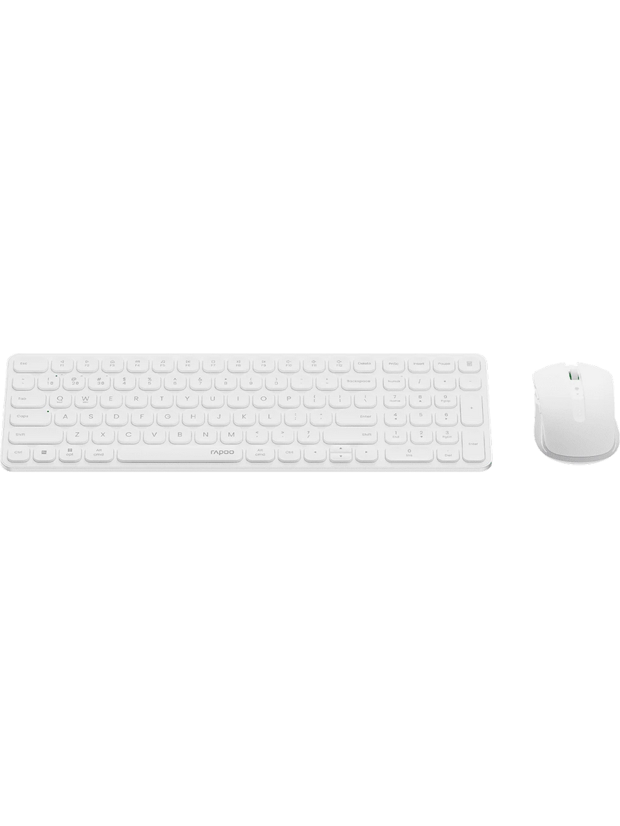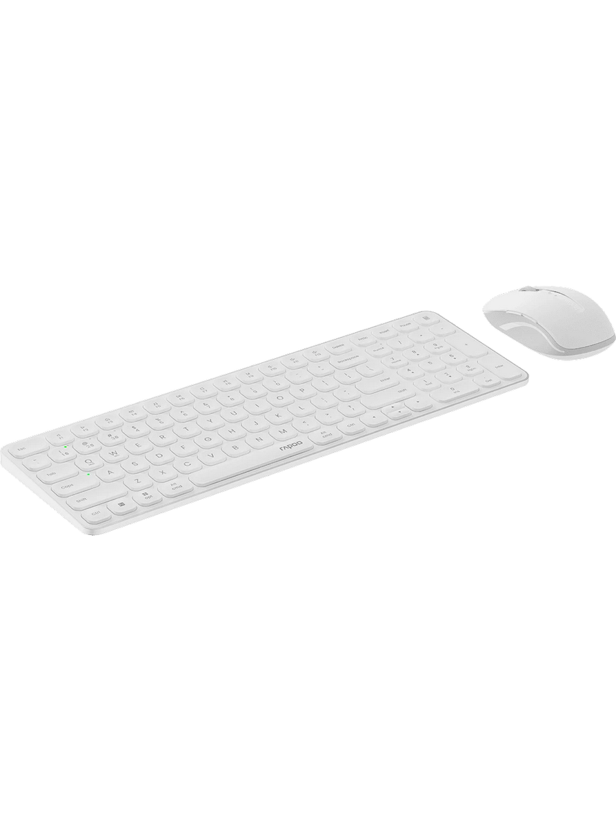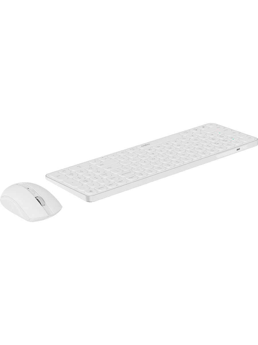 Комплект периферийных устройств RAPOO 9350S‑WHT в элегантном белом исполнении — оптимальное решение для домашнего и офисного использования. Сочетание эргономичной клавиатуры и удобной мыши обеспечивает комфорт при длительной работе за компьютером. Основные характеристики Клавиатура: тип: мембранная; раскладка: полноразмерная (включая цифровой блок); подключение: беспроводное (радиоканал 2,4 ГГц); интерфейс: USB‑приёмник; количество клавиш: стандартное (104/105); подсветка клавиш: отсутствует; питание: батарейки типа AA (1 шт., в комплект не входит); габариты: компактные, эргономичный дизайн. Мышь: тип: оптическая; количество кнопок: 3 (левая, правая, колёсико‑кнопка); колесо прокрутки: есть; подключение: беспроводное (радиоканал 2,4 ГГц); интерфейс: USB‑приёмник; питание: батарейка типа AA (1 шт., в комплект не входит); дизайн: эргономичный, подходит для правой руки. Особенности и преимущества Беспроводное подключение. Комплект работает через единый USB‑приёмник на частоте 2,4 ГГц — достаточно подключить один адаптер к компьютеру. Длительная автономность. Энергоэффективная конструкция позволяет устройствам работать долгое время без замены батареек. Компактность и мобильность. Лёгкие и компактные устройства удобно брать с собой в поездки или использовать на ограниченном пространстве. Универсальность. Совместимость с Windows и macOS — подходит для большинства ПК и ноутбуков. Стильный дизайн. Белый корпус придаёт комплекту современный и лаконичный внешний вид, который гармонично впишется в любой интерьер. Простая настройка. Подключение «plug‑and‑play»: не требуется установка дополнительных драйверов.