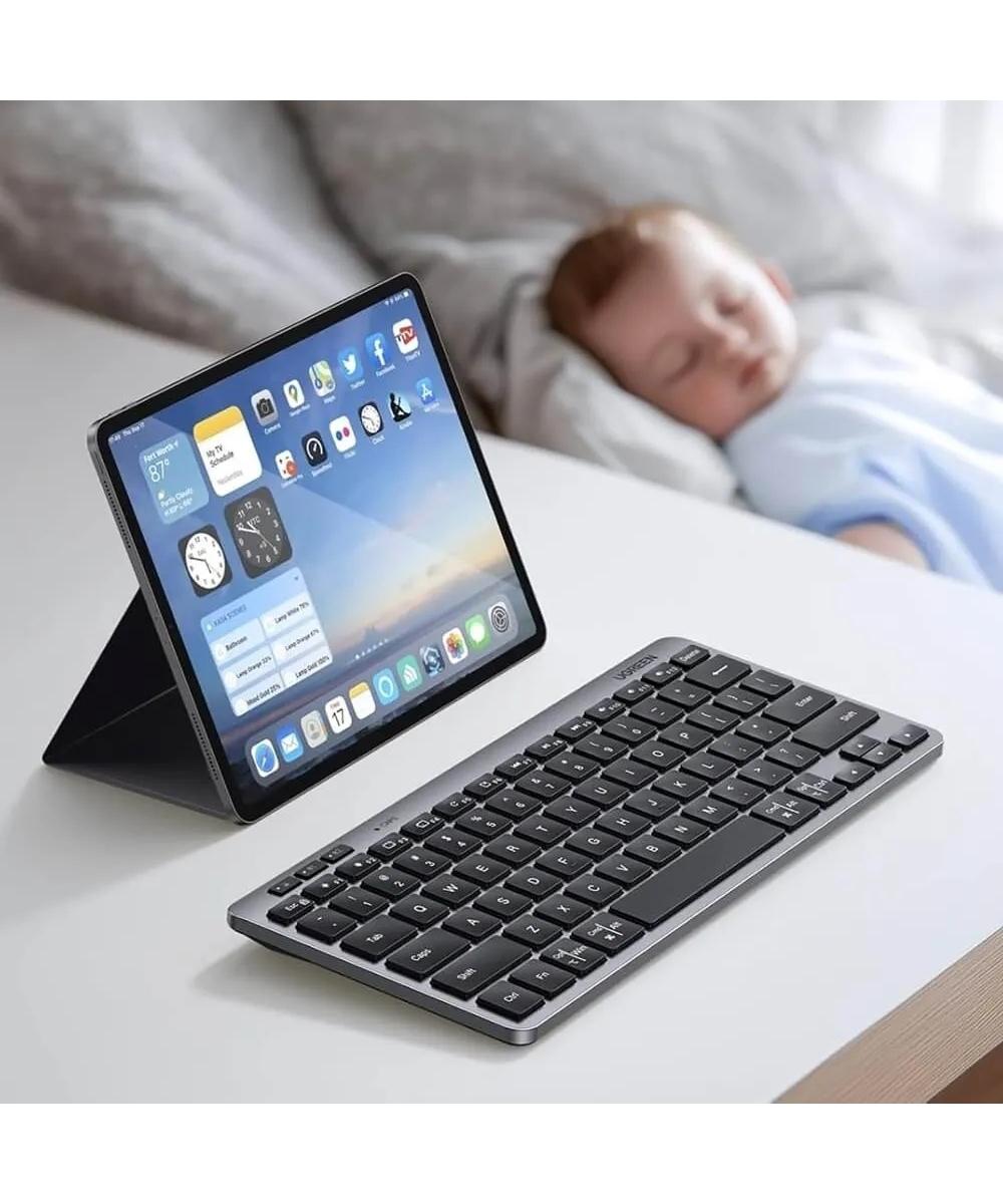Компактная клавиатура Ugreen K551 легко поместится в любой портфель. Раскладка из 78 клавиш позволяет максимально эффективно использовать пространство на рабочем столе. Удобное управление тремя устройствами. Легко переключайтесь между тремя устройствами (ПК, планшет, телефон) с помощью Bluetooth 5.3 или 2.4 ГГц. Специальные клавиши мгновенно переключают устройства — идеально для гибридных рабочих процессов на клавиатуре. Тихие клавиши. Печатайте тихо с технологией Silent Keyboard. Сферические вогнутые клавиши (ход 1.8 мм, усилие нажатия 120 г) идеальны для офисов с большим количеством сотрудников или для ночной работы. Эргономичное расположение клавиш. Обеспечьте комфорт запястьям благодаря эргономичному дизайну клавиатуры с наклоном 9°. Такая конструкция также помогает поддерживать правильную осанку. Горячие клавиши. Управляйте задачами с помощью горячих клавиш FN — мгновенно регулируйте яркость, громкость и переключайте медиа. Клавиатура автоматически определяет ОС (Windows/Mac OS) и переназначает клавиши — загрузка приложений не требуется. Основные характеристики. Тип клавиатуры: компактная. Тип механизма клавиш: мембранный. Тип подключения: беспроводная. Назначение: для пк, для ноутбука, для планшета, для смартфона. Устройство: универсальный. Клавиши. Количество клавиш: 78. Цвет английской раскладки: белый. Интерфейсы. Тип беспроводной связи: Bluetooth, радиоканал. Форм-фактор приемника: миниатюрный. Питание. Питание беспроводной клавиатуры: элементы питания. Тип элементов питания: AAA. Количество элементов питания: 2 шт. Время автономной работы беспроводной клавиатуры: 250 дней. Дополнительные характеристики. Совместимость с ОС: Android, iOS, Linux, Mac OS, Microsoft Windows. Световые индикаторы: да. Без цифрового блока: да. Дополнительная информация: одновременное подключение до 3 устройств, ход клавиш - 1.8 мм. Корпус. Цвет: чёрный. Материал корпуса: пластик. Ультратонкий корпус: да. Комплектация. Беспроводной адаптер: да.
