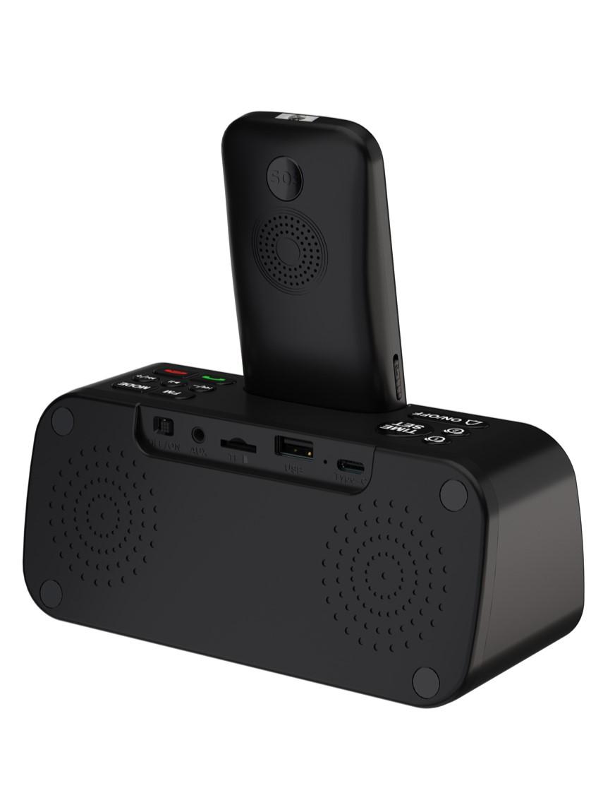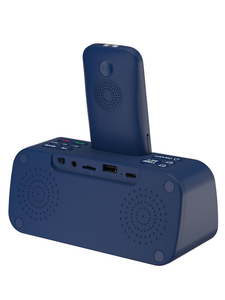Док‑станция с расширенными функциями: служит зарядным устройством, позволяет принимать/отклонять вызовы без снятия трубки, работает как Bluetooth‑колонка, будильник и FM‑радиоприёмник.