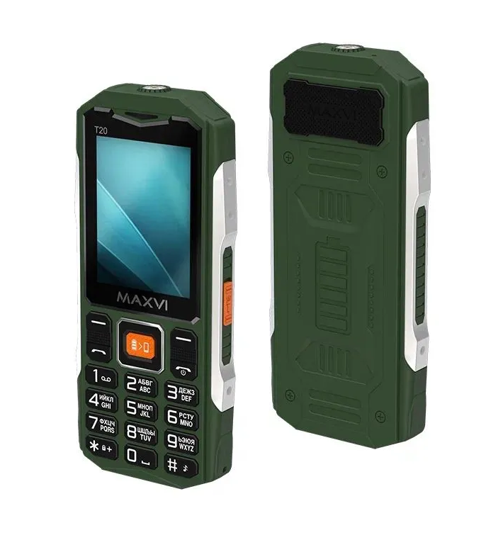 Mобильный телефон с диагональю экрана 2,4”, усиленными боковыми металлическими вставками и ёмким аккумулятором 2000 mAh. Maxvi T20 оснащён функцией Powerbank, позволяющей превратить Ваш телефон в источник энергии для других устройств. Данный аппарат разработан с учётом требований 76-ФЗ для военнослужащих ВС РФ (отсутствие доступа в Интернет, дополнительного флеш-накопителя, фотокамеры, диктофона, Bluetooth, MMS).