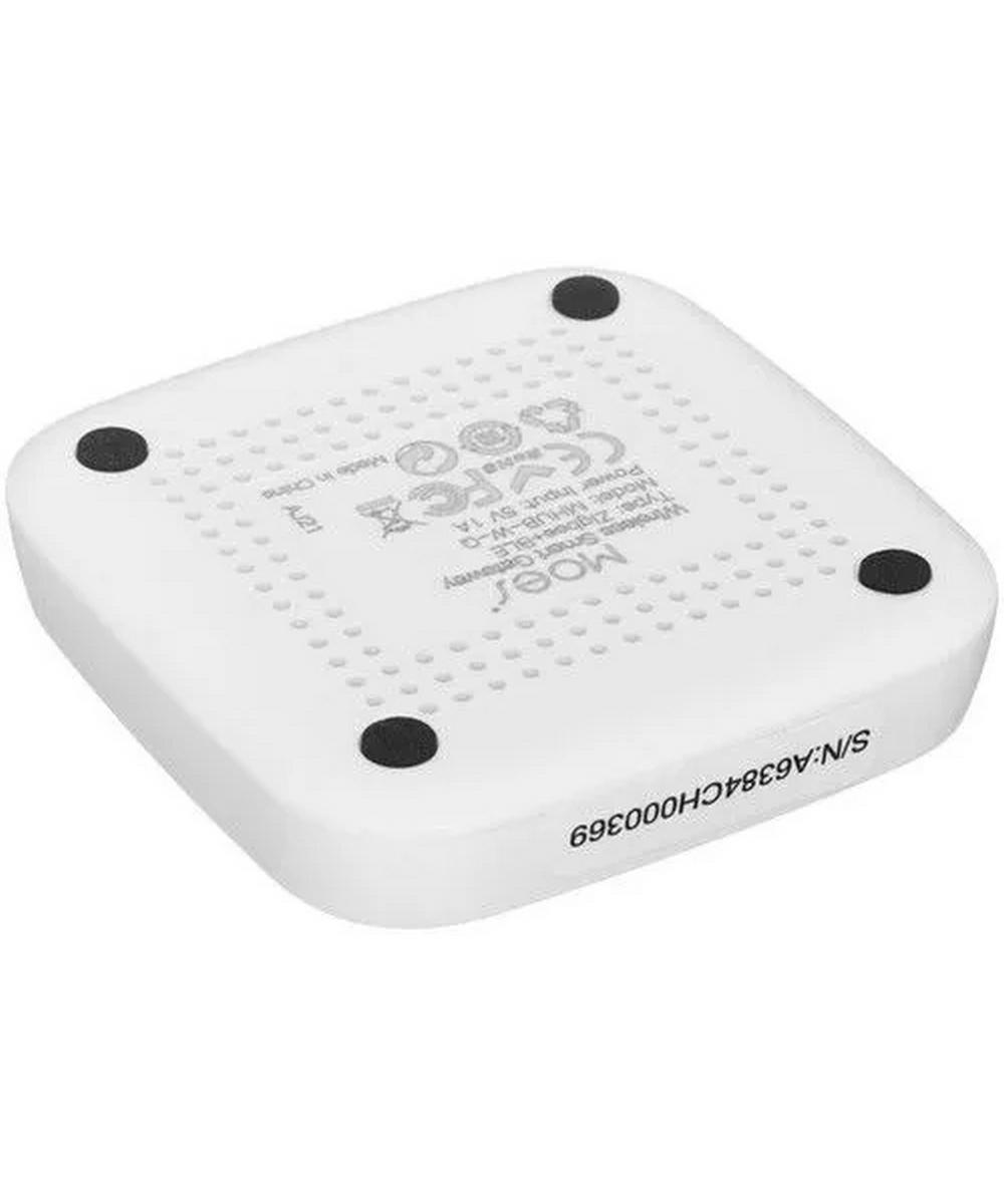 ZigBee‑шлюз Moes ZHUB‑W‑MS — многофункциональный хаб для системы умного дома, объединяющий Bluetooth‑ и ZigBee‑устройства в единой экосистеме с управлением через мобильное приложение. Устройство выполнено в белом корпусе из PC+ABS, имеет компактные размеры 60 × 60 × 15 мм и весит 84 г в упаковке. Питание осуществляется от источника 5 В с максимальным током 2 А и нагрузкой до 5 Вт. Шлюз работает в сети Wi‑Fi на частоте 2,4 ГГц (стандарт IEEE 802.11 b/g/n) и поддерживает беспроводной протокол ZigBee 3.0. Он совместим с мобильными операционными системами iOS 8.0 и выше, а также Android 4.0 и новее. Рабочие условия предусматривают температурный диапазон от −10 до 55 ℃ и влажность от 10 до 90 % RH (без конденсации), а дальность передачи сигнала составляет 10–30 м.