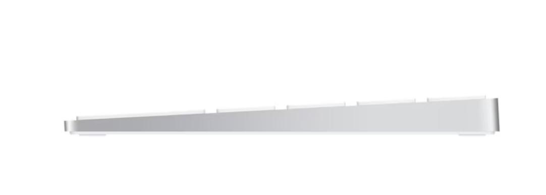 Единственная модель, сочетающая беспроводное подключение и наличие цифровой панели. Относится ко второму поколение тонких беспроводных клавиатур Аррlе с эргономичным дизайном и абсолютно бесшумными клавишами. Тоньше, легче и удобнее, чем предыдущая модель. Питается от встроенного аккумулятора, держит заряд до 1 мес.