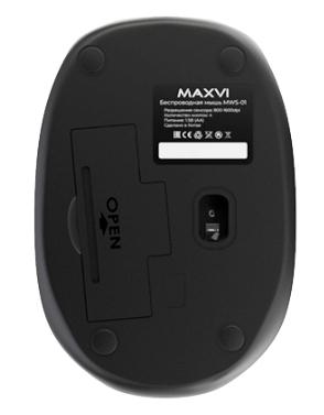 Беспроводная мышь Maxvi MWS-01 имеет 2 основные кнопки, колесо прокрутки с функцией нажатия и дополнительную кнопку dpi, которая позволяет переключать режим работы чувствительности сенсора.