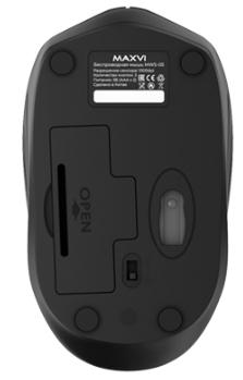 Беспроводная мышь Maxvi MWS-05 имеет 2 основные кнопки и колесо прокрутки с функцией нажатия. Оптический сенсор мышки имеет разрешение 1000 dpi, который позволяет комфортно управлять курсором в различных приложениях и графических редакторах.