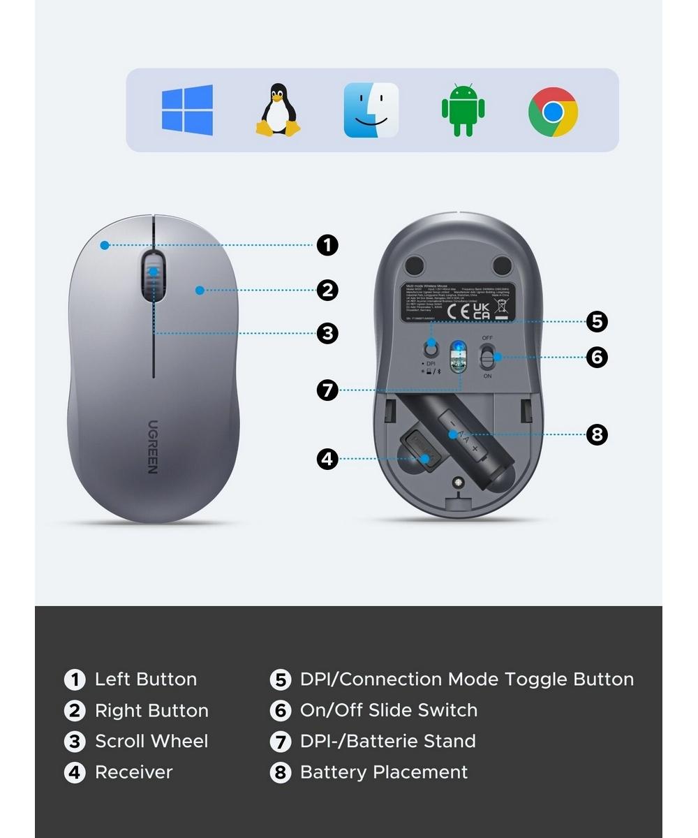 UGREEN M331 Grey — это не просто манипулятор, а ваш надежный и интеллектуальный спутник в цифровом мире. Она объединяет в себе передовые беспроводные технологии, продуманную эргономику для всех и высокую точность, освобождая вас от ограничений и позволяя сосредоточиться на самом главном — на вашей работе, творчестве или отдыхе. Это разумное вложение в ваш ежедневный комфорт и эффективность.