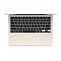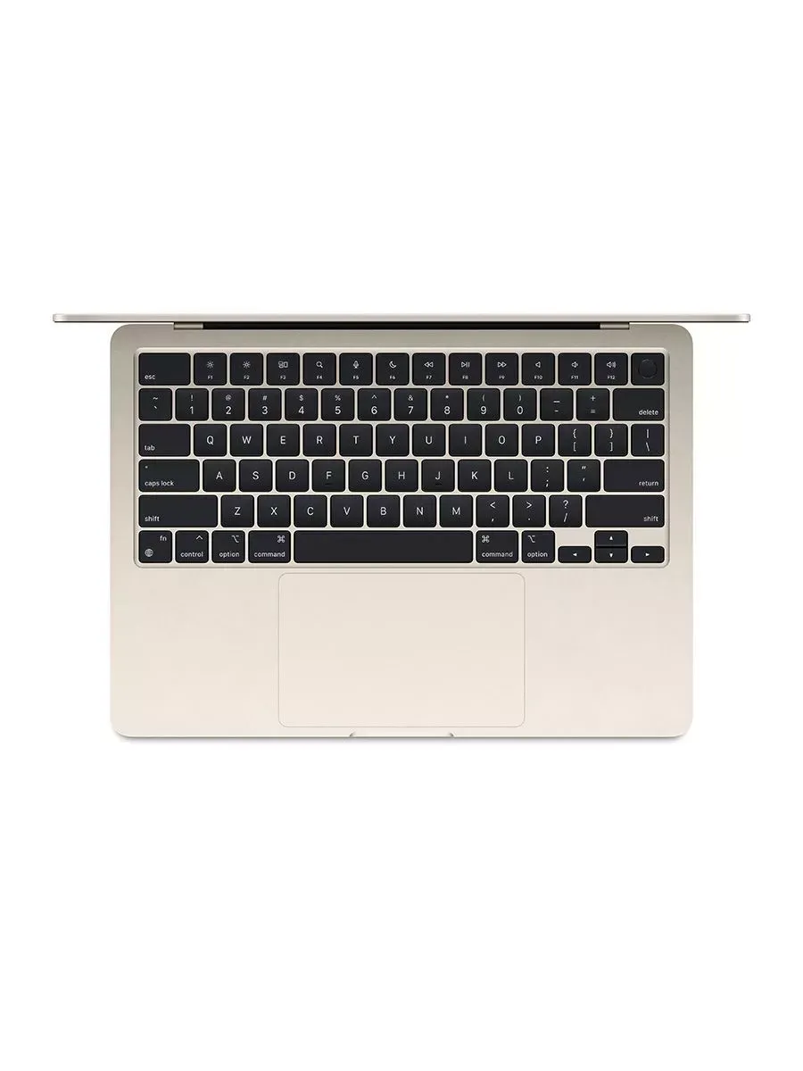 Клавиатура MacBook Air 13" M3 оснащена подсветкой и сканером отпечатков пальцев, что обеспечивает удобство использования в условиях недостаточного освещения.