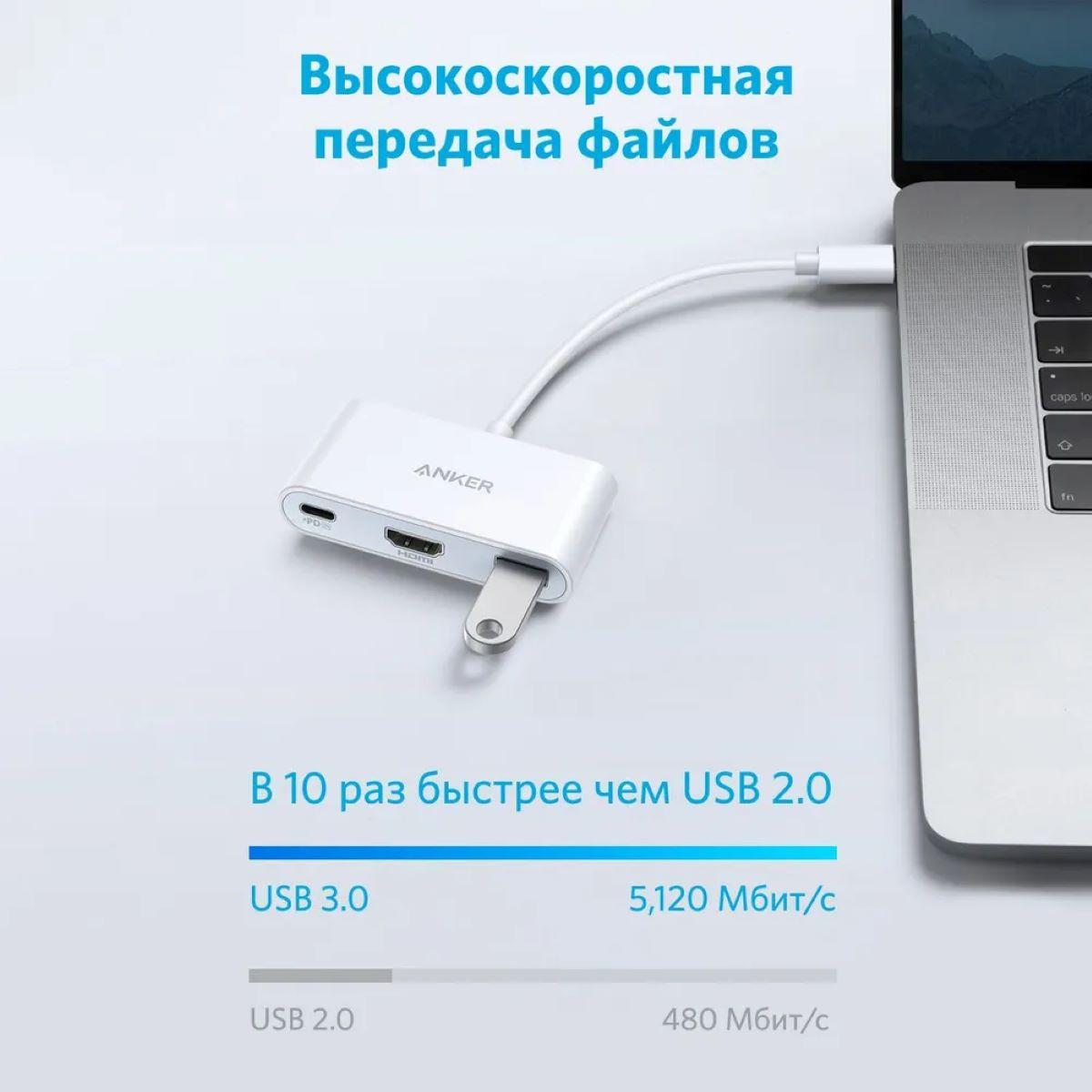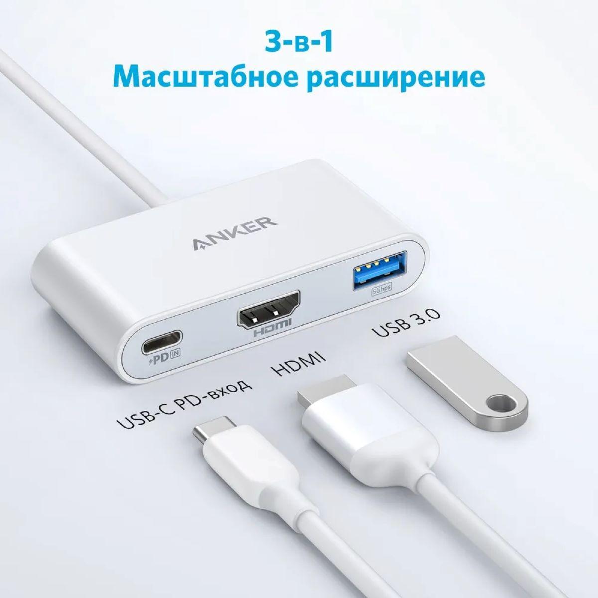 Разветвитель Anker A8339H215-WT PowerExpand 3-в-1 USB-C PD.