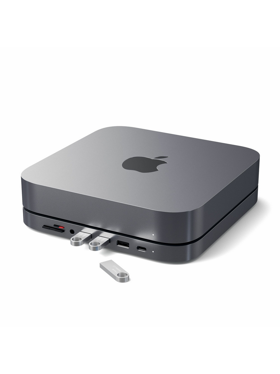 Подставка-док станция Satechi Mac Mini Stand & Hub серый космос 1x USB-C, 3 x USB, 3,5mm AUX, SD