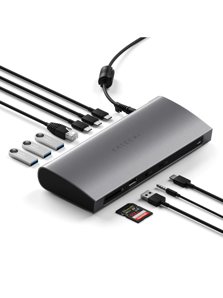 Док-станция Thunderbolt 4 оснащена множеством портов USB, которые подходят для подключения USB-мышей, клавиатур, жестких дисков и других устройств, а также съемным адаптером переменного тока для дополнительного питания мощных периферийных устройств.