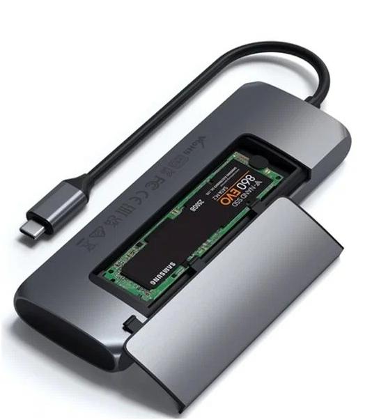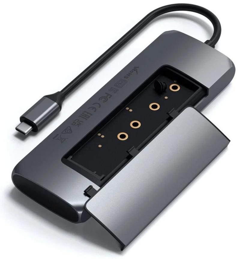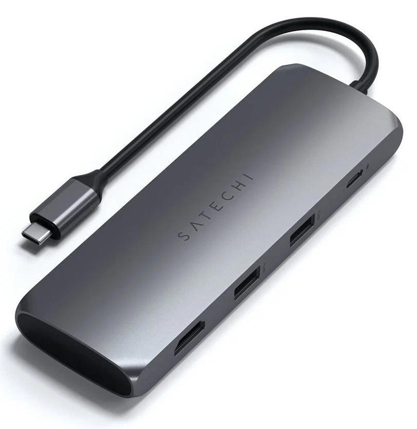 Многопортовый адаптер Satechi помогает повысить производительность труда. Мобильный многопортовый адаптер с гладкой алюминиевой отделкой и конструкцией Plug and Play позволяет работать с максимальной эффективностью, где бы вы ни находились.
