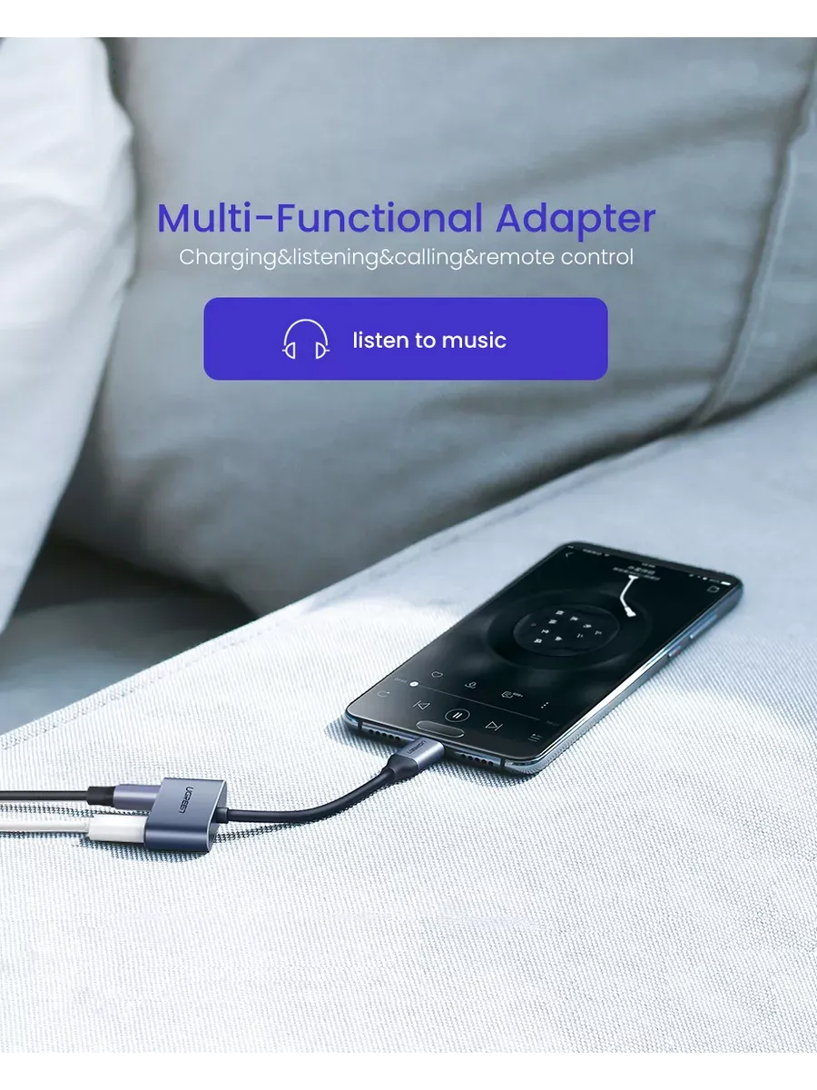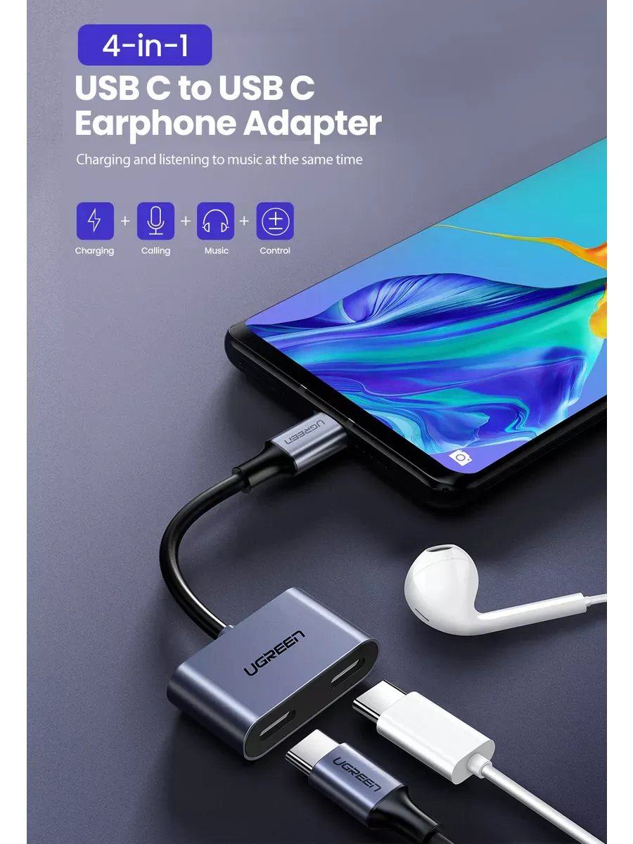 UGREEN USB C Charger Audio Adapter Splitter расширяет два порта USB C для ваших телефонов. Благодаря высококачественному усовершенствованному чипсету адаптер Type C обеспечивает быструю зарядку PD 3.0 и стереозвук одновременно. Этот адаптер USB C позволяет заряжать телефон на высокой скорости во время прослушивания музыки.
